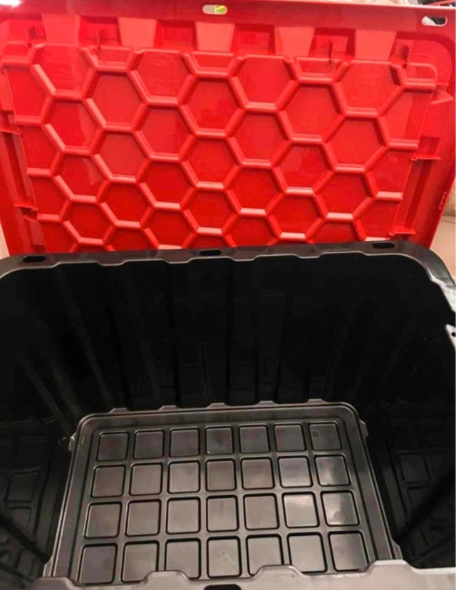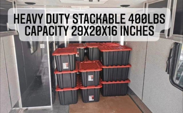PURCHASE prices Brand NEW bins available. Limited time sale $13.13 off regular price. $12.86 each Brand new (red lids) Limited time sale $10 off regular price. 15.99 each brand new mastercraft (blue lids) $25.99 +GST Never been used, cleaned inside & out in mint condition. Free labels placed on bins *Taxes apply, prices subject to change*