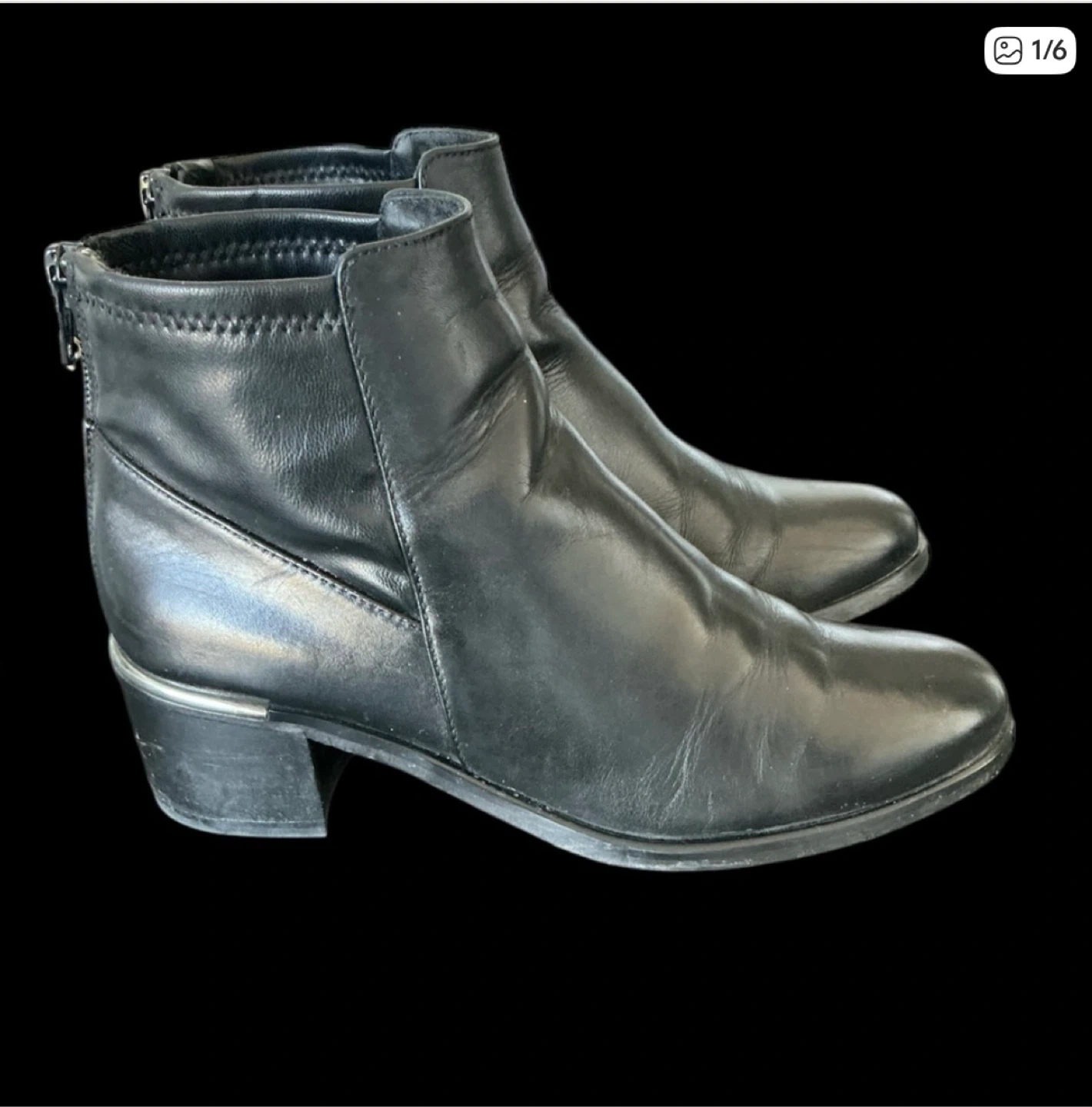 Selling a pair of black leather ankle boots! They have a stylish and versatile design, perfect for any outfit. These boots are in good condition and ready for a new home
