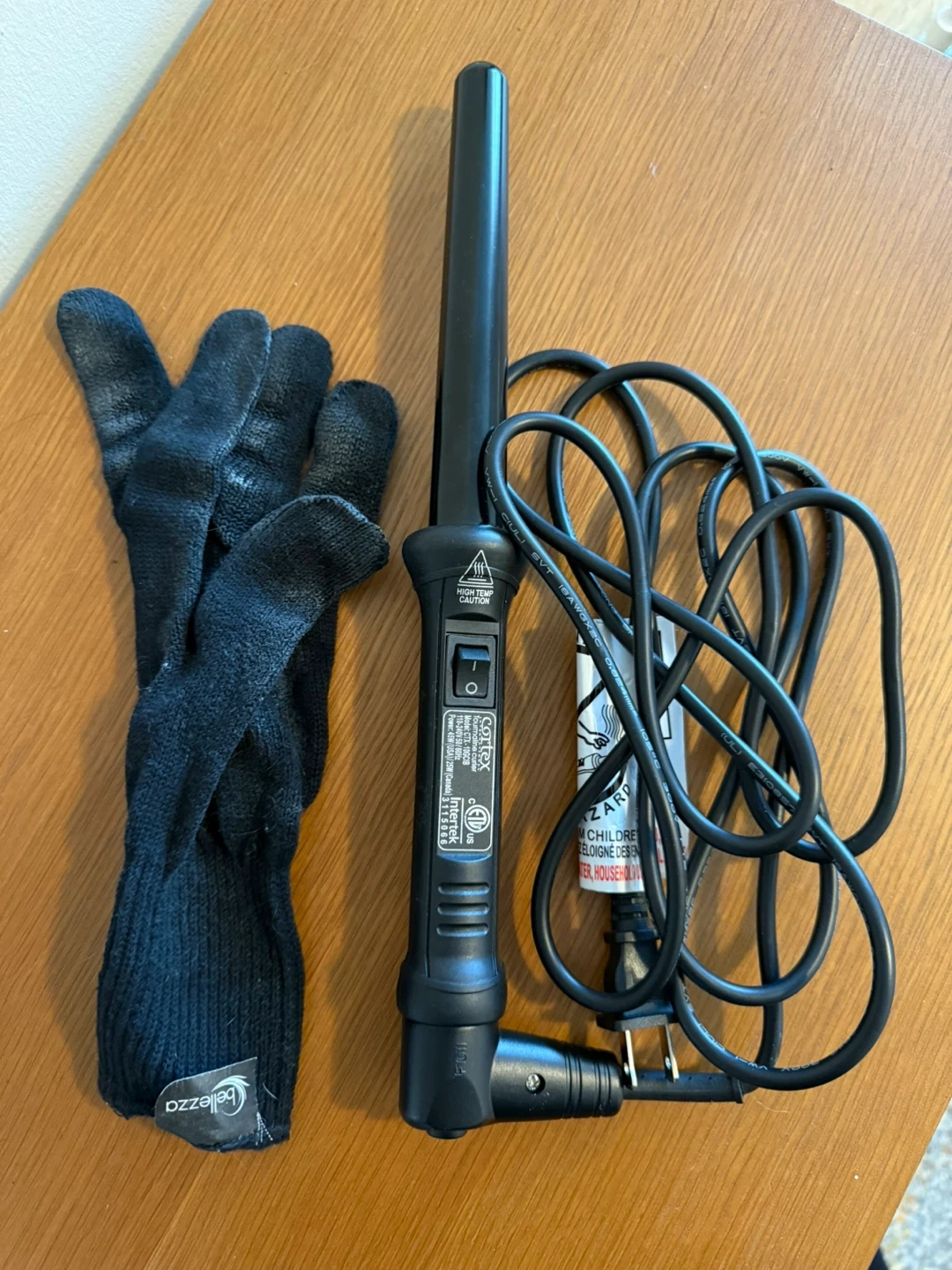 Selling a Cortex International Tourmaline Curler, model CTX-10GCIB. It's in great condition and ready to use! It operates on 110-240V 50/60Hz and has a power rating of 45W (USA) / 25W (Canada). A heat-resistant glove is also included for safe styling