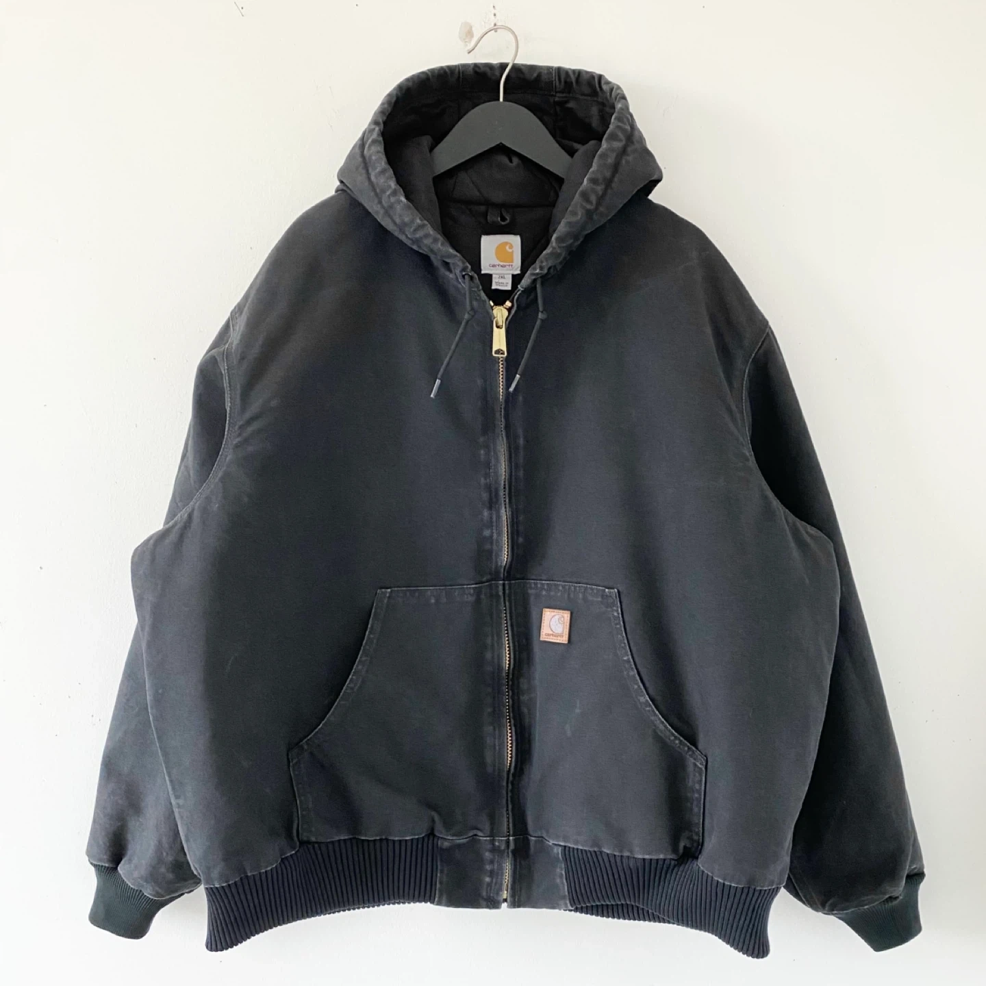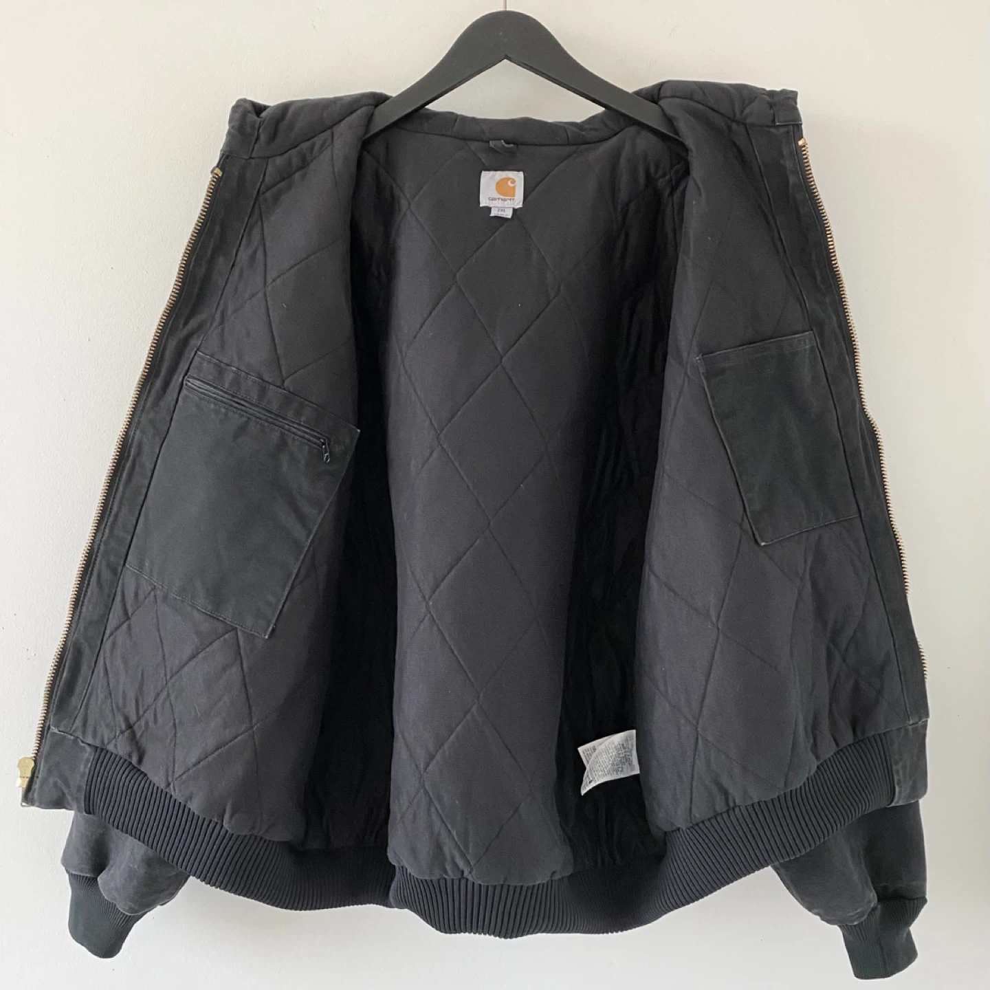 615Pick up only in Leslieville (Queen and Pape) Check out other listings! Carhartt hooded jacket / The active jacket. Feature half moon patch pockets, ribbed cuffs and hem and inner pockets (one with a zip, another with velcro). Fabric is 100% cotton canvas. Fully lined with quilted fleece for the body and quilted satin for the sleeves for easier slide for your arms. There's some general wear but It's clean and in excellent condition. Size 2XL Approximate measurements laid flat Shoulder 24” Pit to pit 31” Shoulder to cuff 26.5” Center back length 29”