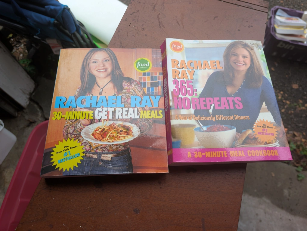 Selling two Rachael Ray cookbooks! One is "30-Minute Get Real Meals" and the other is "365: No Repeats, A Year of Deliciously Different Dinners". Both are New York Times bestsellers!