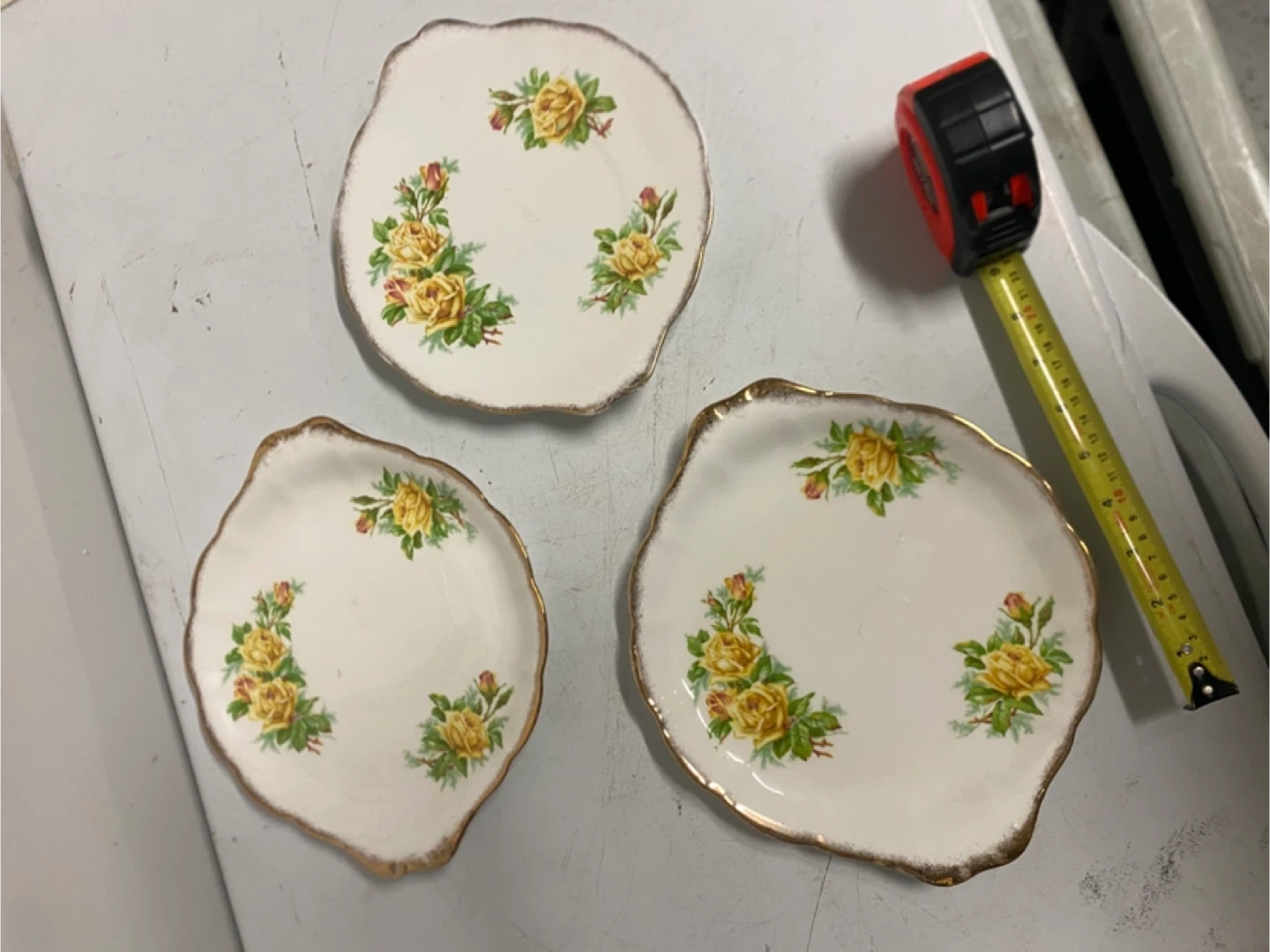 21Selling a set of Royal Albert Bone China plates with the Tea Rose design! These were made in England and feature a beautiful floral pattern with gold trim. They're in great condition and would be a lovely addition to any collection