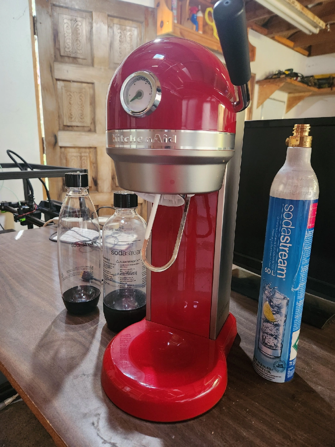 KitchenAid SodaStream..It comes with two SodaStream bottles and a CO2 cylinder. Kitchen aid brand..barely used.