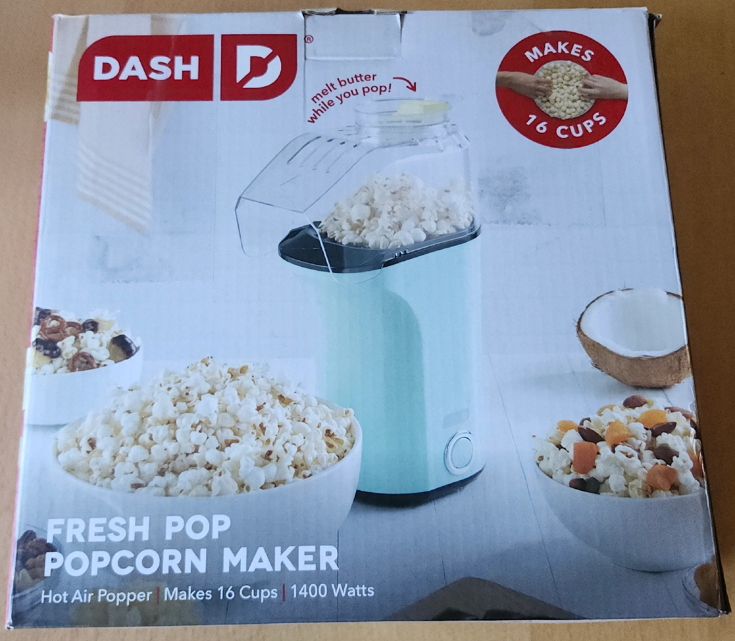 Get ready for movie nights with this Dash Fresh Pop Popcorn Maker! It's a hot air popper that makes up to 16 cups of popcorn. It even has a feature to melt butter while you pop! Perfect for a quick and healthy snack. Brand new in box, retails for $52.