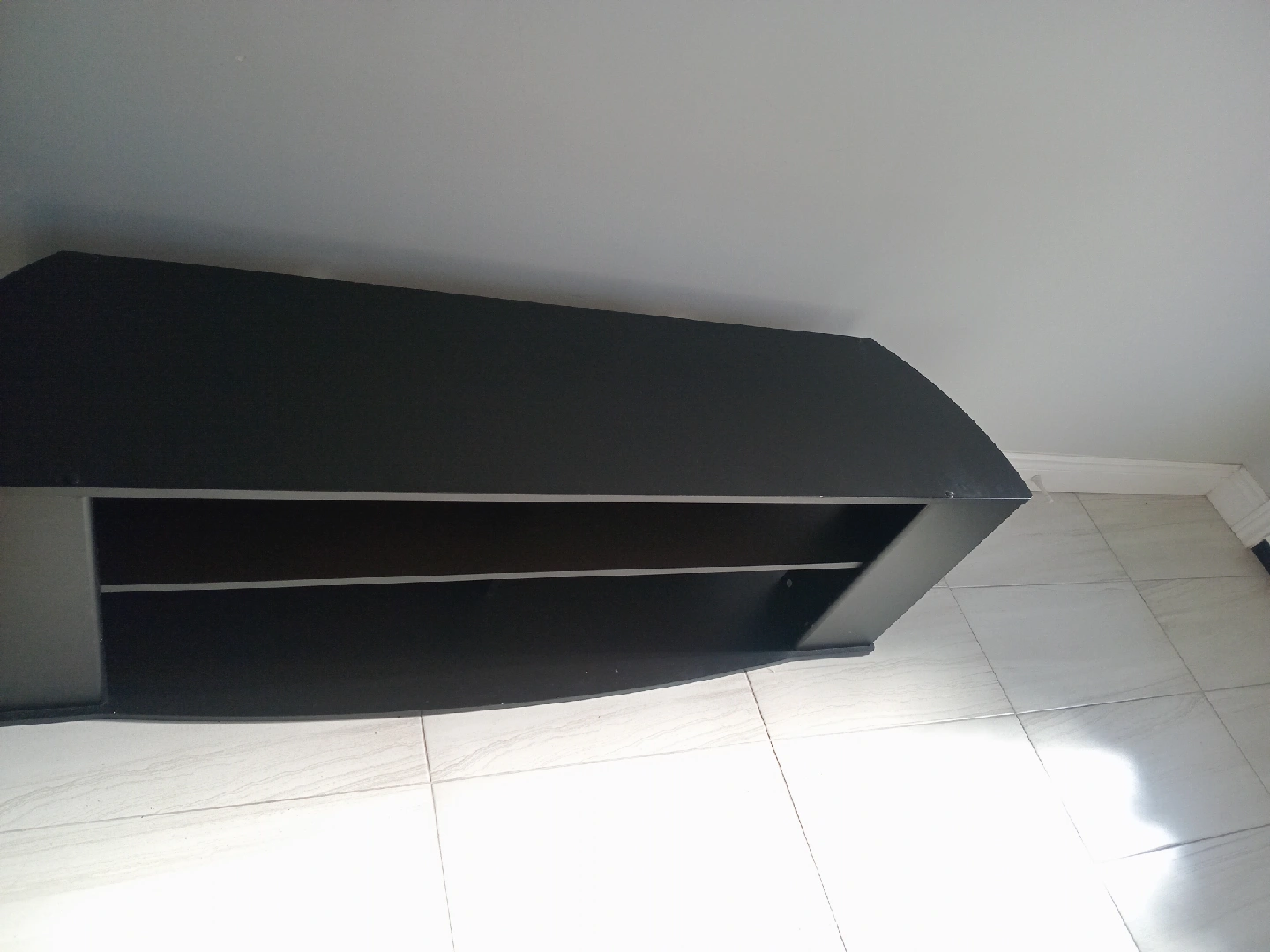 Selling a black TV stand with two shelves. It's in great condition and ready for a new home! Perfect for organizing your entertainment setup.