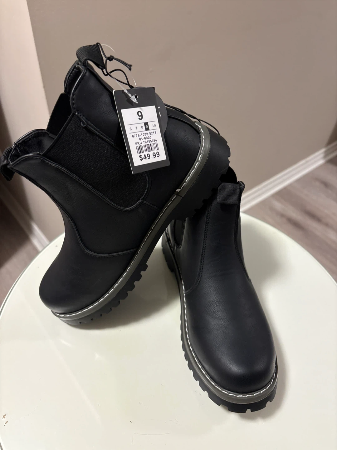 These are a brand new pair of black Chelsea boots in a size 9! They are in excellent condition and have never been worn. The tag shows they were originally $49.99 pick up walnut grove Langley Get ready for winter time is worm inside