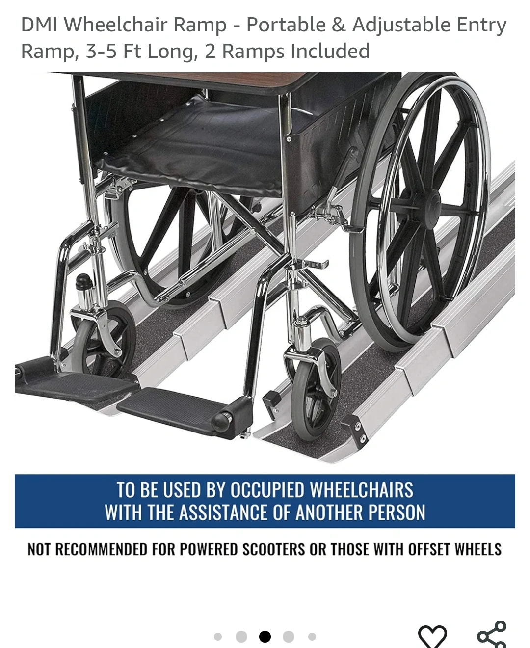 Retails for $223 plus tax! https://www.amazon.ca/DMI-Telescoping-Retractable-Lightweight-Wheelchair/dp/B001OND9BY This portable and adjustable wheelchair ramp from DMI, extendable from 3 to 5 feet, provides convenient accessibility for wheelchairs and scooters. I am selling it as new in box. Key Features: * Adjustable Length: Extends from 3 to 5 feet to suit various thresholds. * Portable Design: Lightweight and easy to carry and store. * Durable Construction: Made from high-quality materials for long-lasting use. * Non-Slip Surface: Provides excellent traction for safe use in all weather conditions. * Weight Capacity: Can support up to 660 lbs. SKU F31C-339