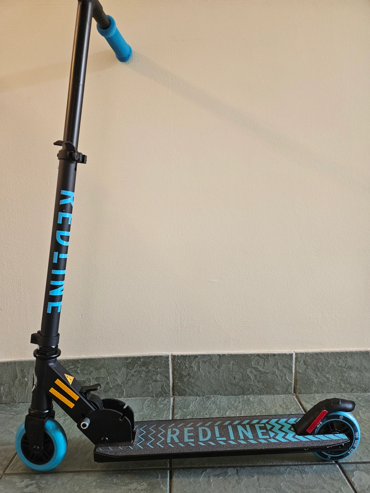 Selling a Redline foldable cadet scooter like new! It's black with blue accents. Perfect for young kids. paid 80. 3 adjustable heights starting at.2 and a half feet downwards.