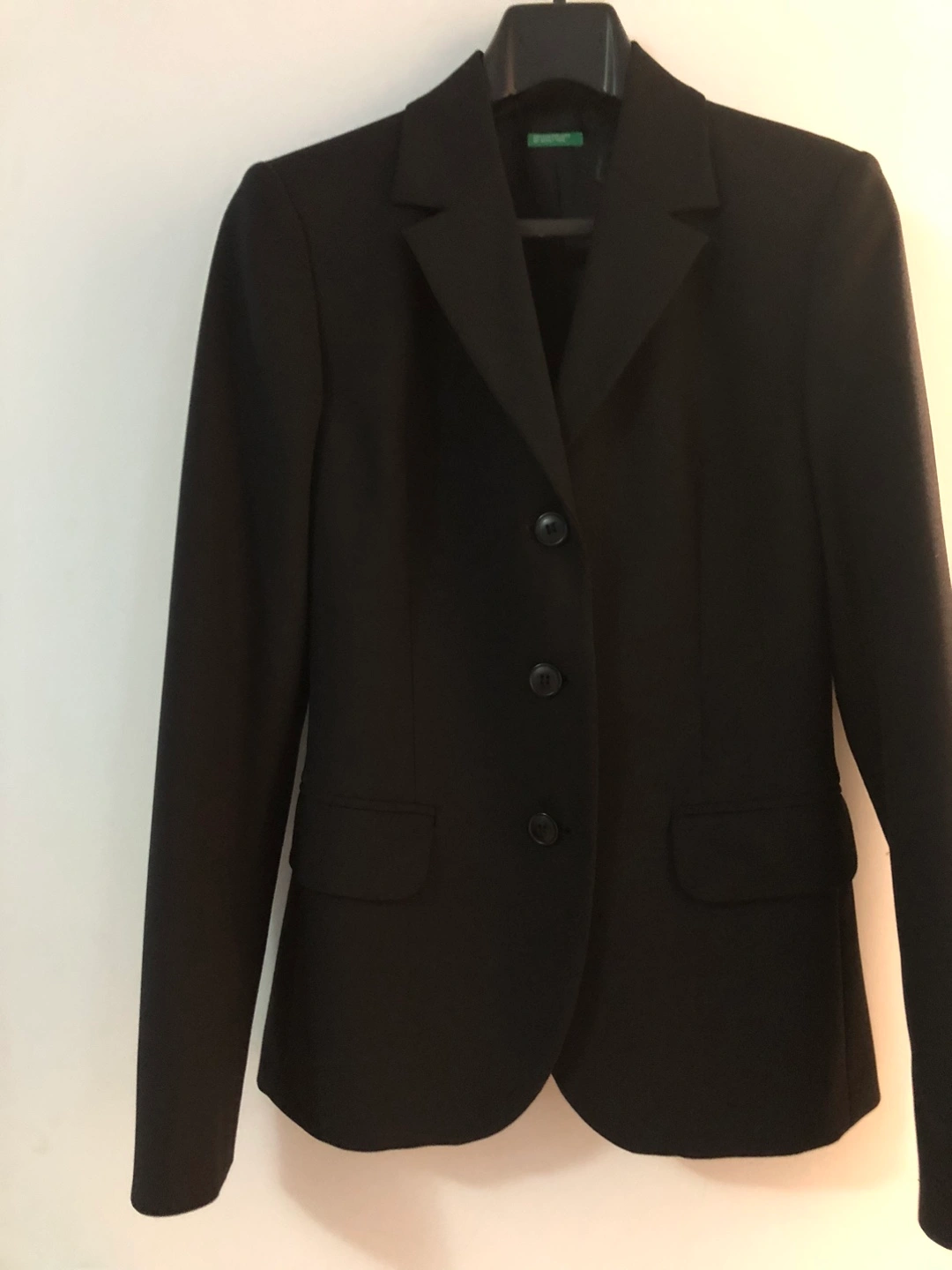 Selling a stylish classic black suit from United Colors of Benetton. Blazer (sz 38) and pants (sz 40). Great for office and formal events.