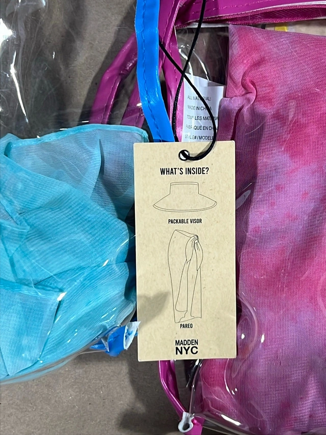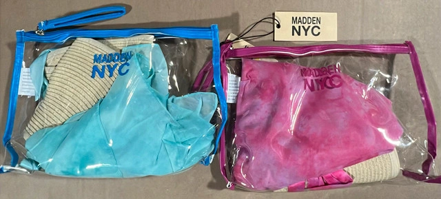 Get ready for your next getaway with this Madden NYC cover-up set! This brand-new set includes a stylish pareo and a packable visor, all in a convenient travel case. Perfect for adding a touch of flair to your beach or poolside look. Here are the details: * Brand: Madden NYC * Includes: Pareo and packable visor * Condition: New * Comes in a travel case Looking for a stylish way to stay covered and chic? This Madden NYC set is the perfect choice. Don't miss out – if the ad is up, it's still available!