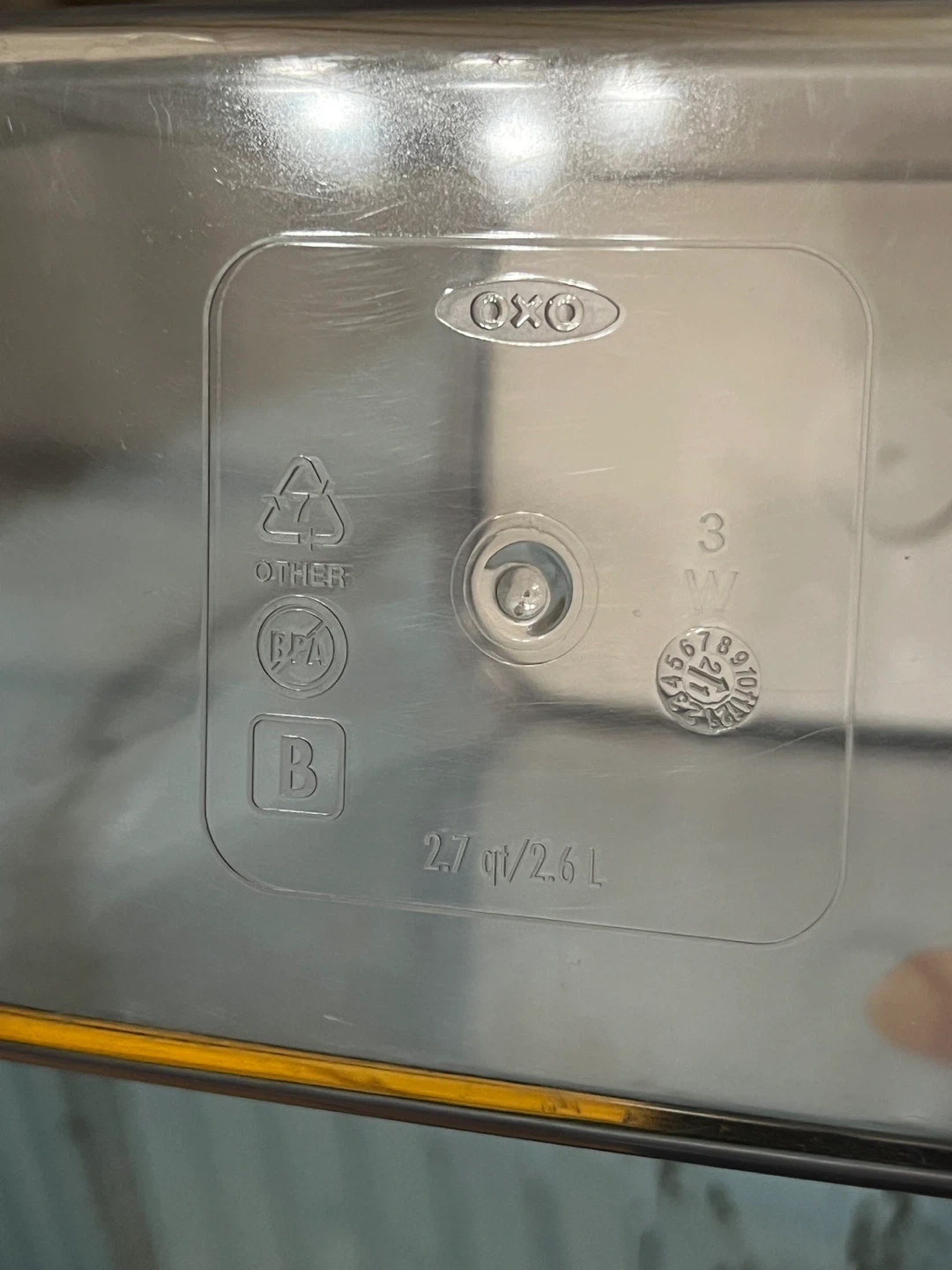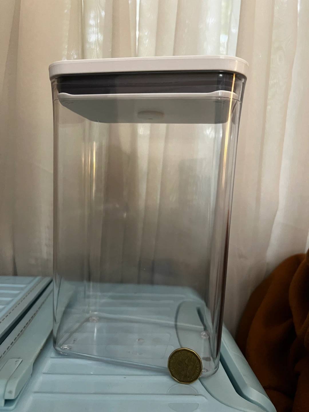 2$ Selling an OXO Good Grips food storage container! It's a clear container with a white lid and has a 2.6 L capacity. Perfect for keeping your pantry organized and your food fresh!