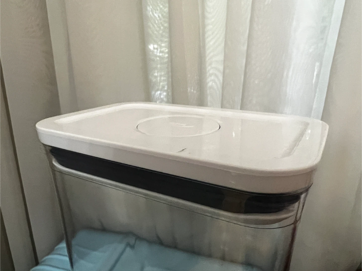 2$ Selling an OXO Good Grips food storage container! It's a clear container with a white lid and has a 2.6 L capacity. Perfect for keeping your pantry organized and your food fresh!