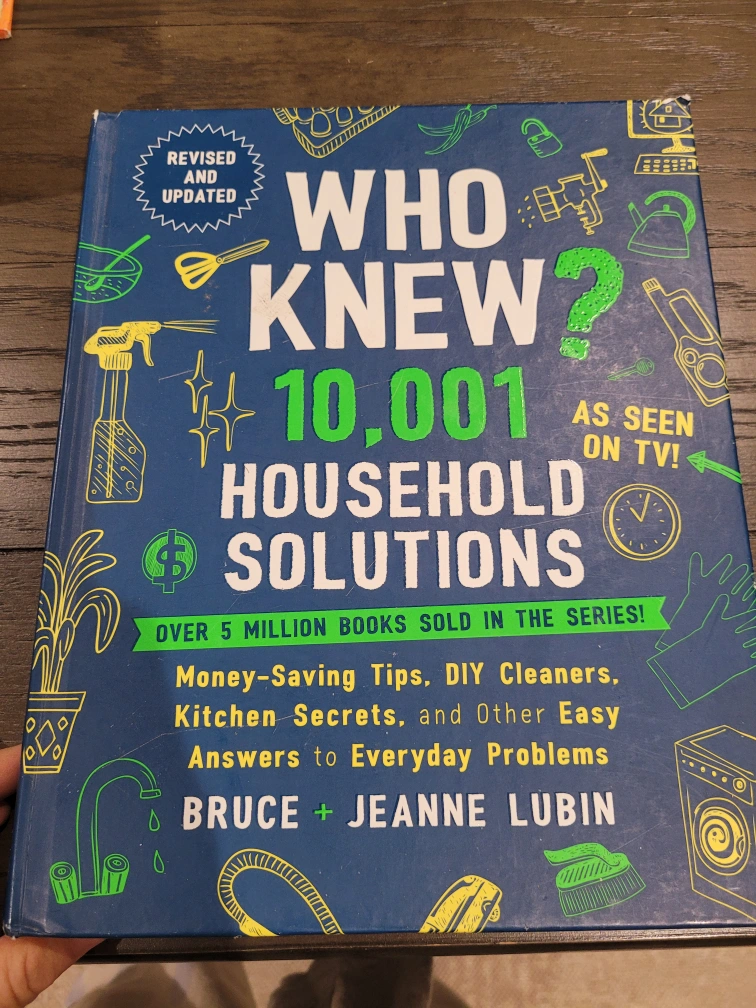 Selling a copy of "Who Knew? 10,001 Household Solutions" by Bruce and Jeanne Lubin. This book is revised and updated and features money-saving tips, DIY cleaners, kitchen secrets, and other easy answers to everyday problems. Over 5 million books sold in the series!