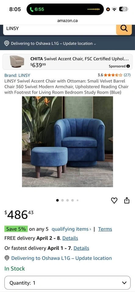 Brand New Velvet Swivel Barrel Chair with Ottoman