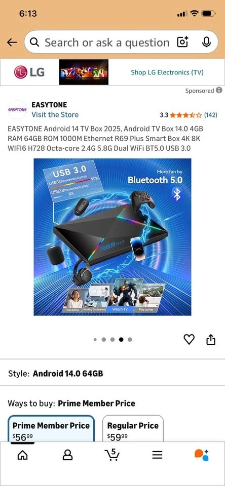 EASYTONE Android 14 TV Boxx 2025, Android TV Box 14.0 4GB RAM 64GB ROM 1000M Ethernet R69 Plus Smart Box 4K 8K WIFI6 H728 Octa-core 2.4G 5.8G Dual WiFi BT5.0 USB 3.0