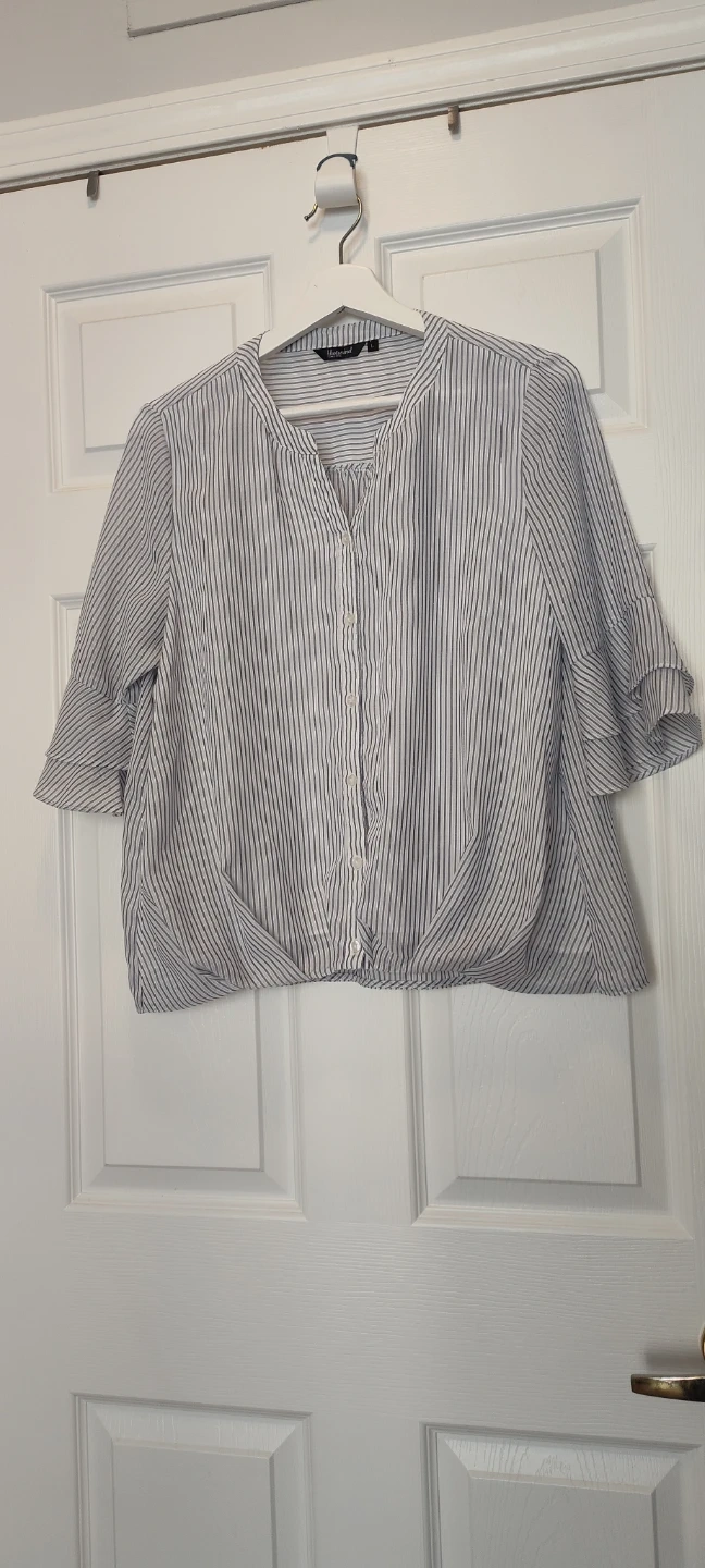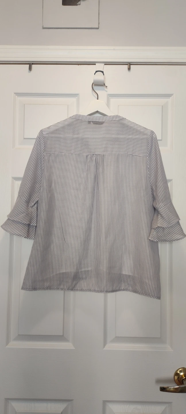 Buy & SellStriped Bell Sleeve BlouseStriped Bell Sleeve Blouse$6A women's striped blouse with button front and tie-waist detail. It features ruffled bell sleeves.ConditionGoodSizeMWHERE TO MEETYonge and FinchView MapSELLEROliviaFinch1000+170 reviews0 chats·2 favorites·10 viewsSEND CHAT TO SELLERHi Olivia! I’m interested in your listing.Hi Olivia! I’m interested in your listing.Get the Karrot app to chatSign In to chat