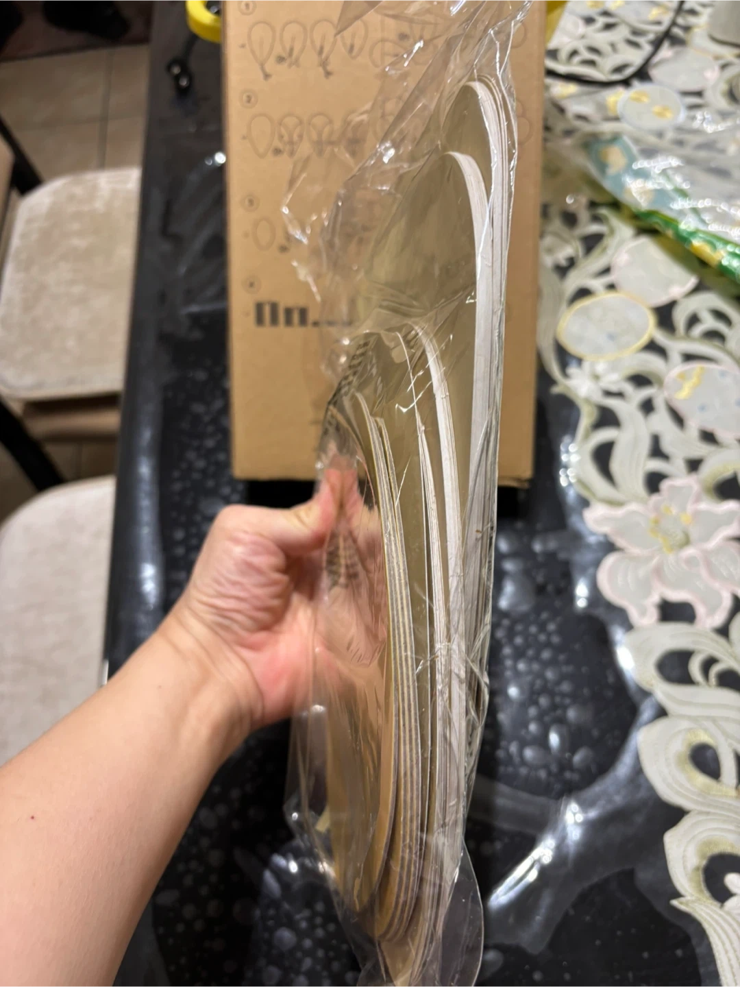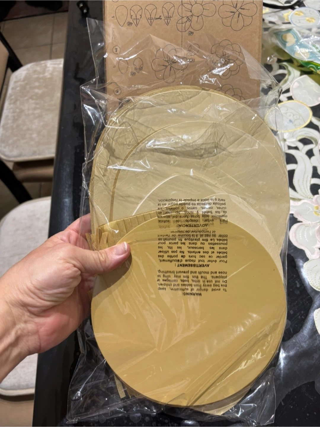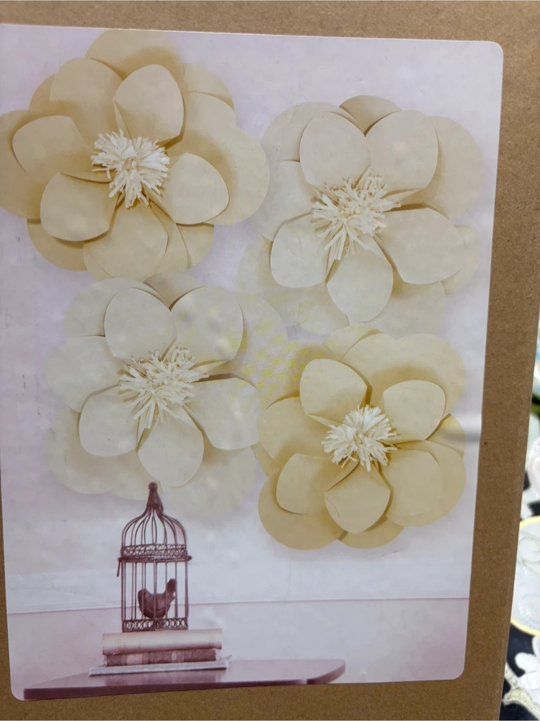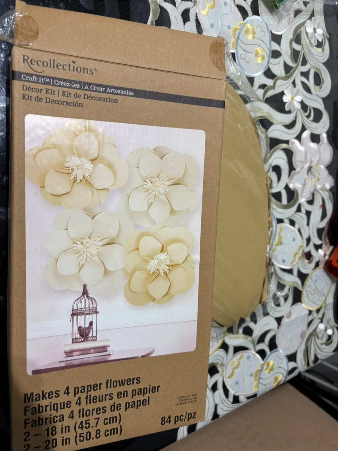 This kit makes 4 paper flowers in two sizes: 2-18 inches (45.7 cm) and 2-20 inches (50.8 cm). It contains 84 pieces. They're great for adding a decorative touch to parties or rooms!