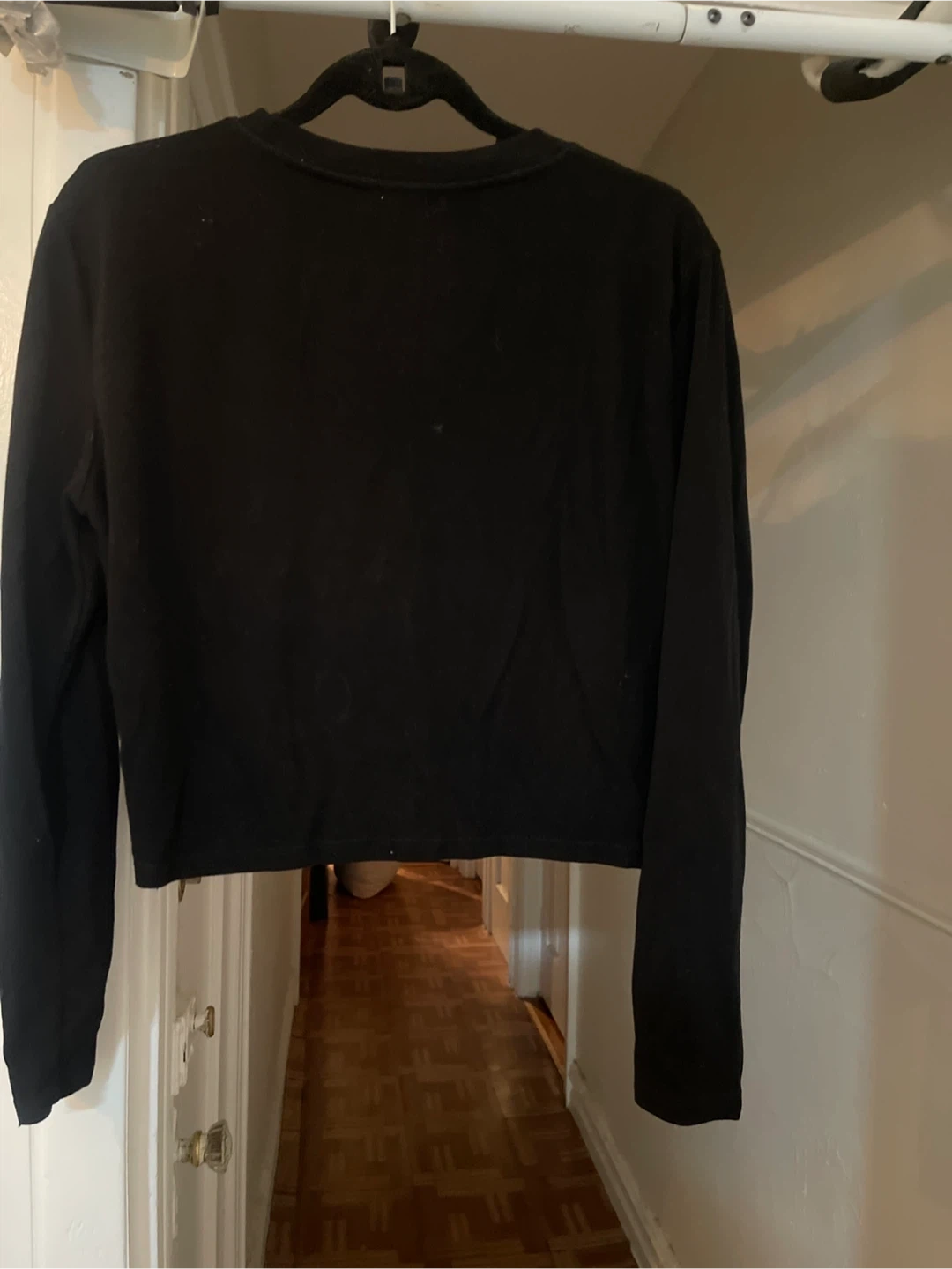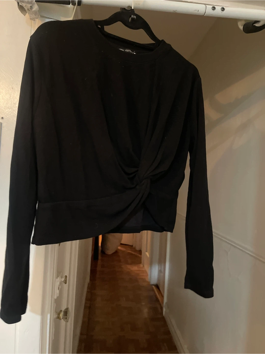 Selling a black long sleeve top with a stylish twist front design. It's in great condition and ready for a new owner!