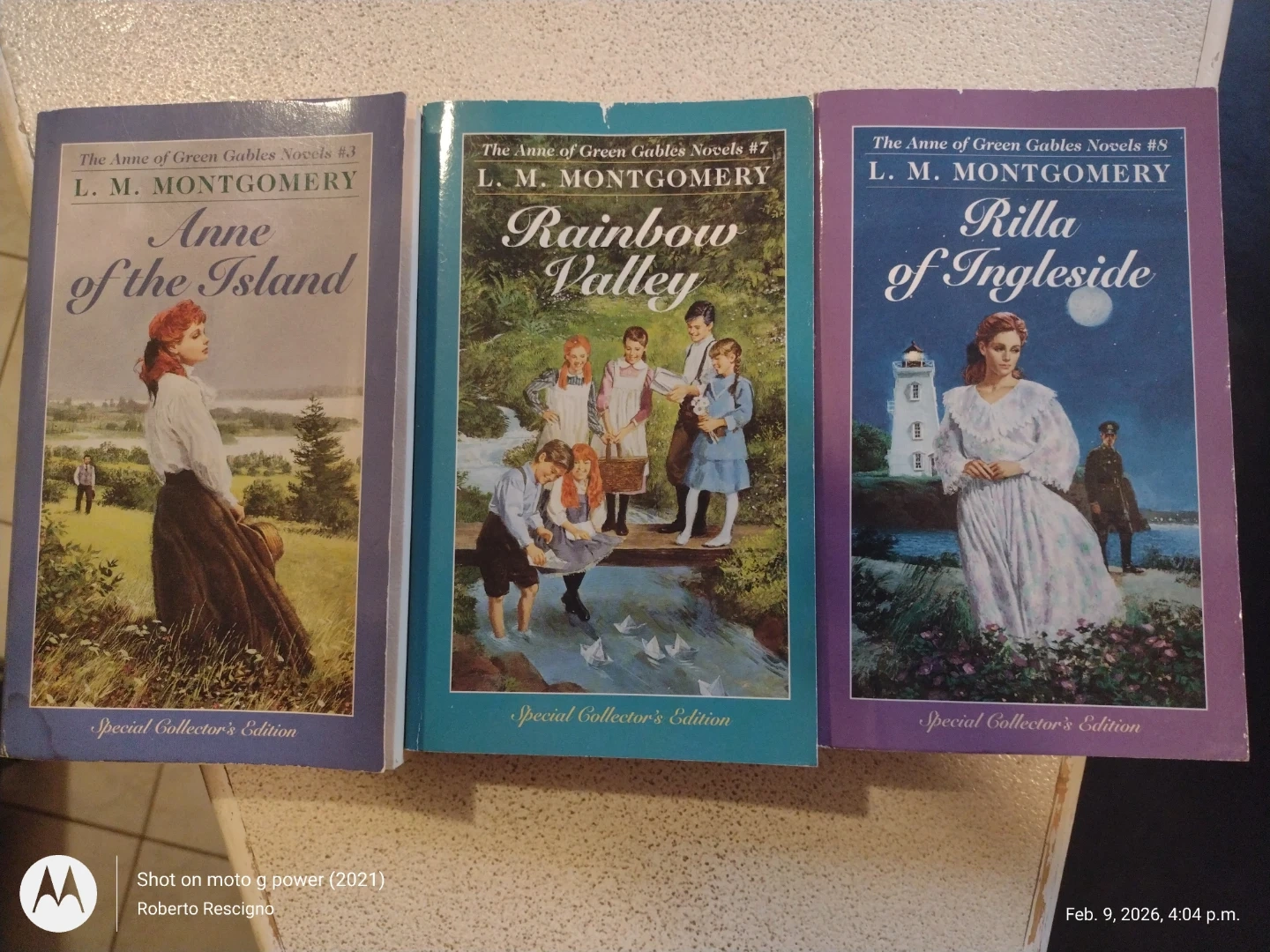 Three books from the Anne of Green Gables Novels series by L.M. Montgomery. Includes 'Anne of the Island' (#3), 'Rainbow Valley' (#7), and 'Rilla of Ingleside' (#8). These are Special Collector's Editions. A great addition for any fan of classic literature!