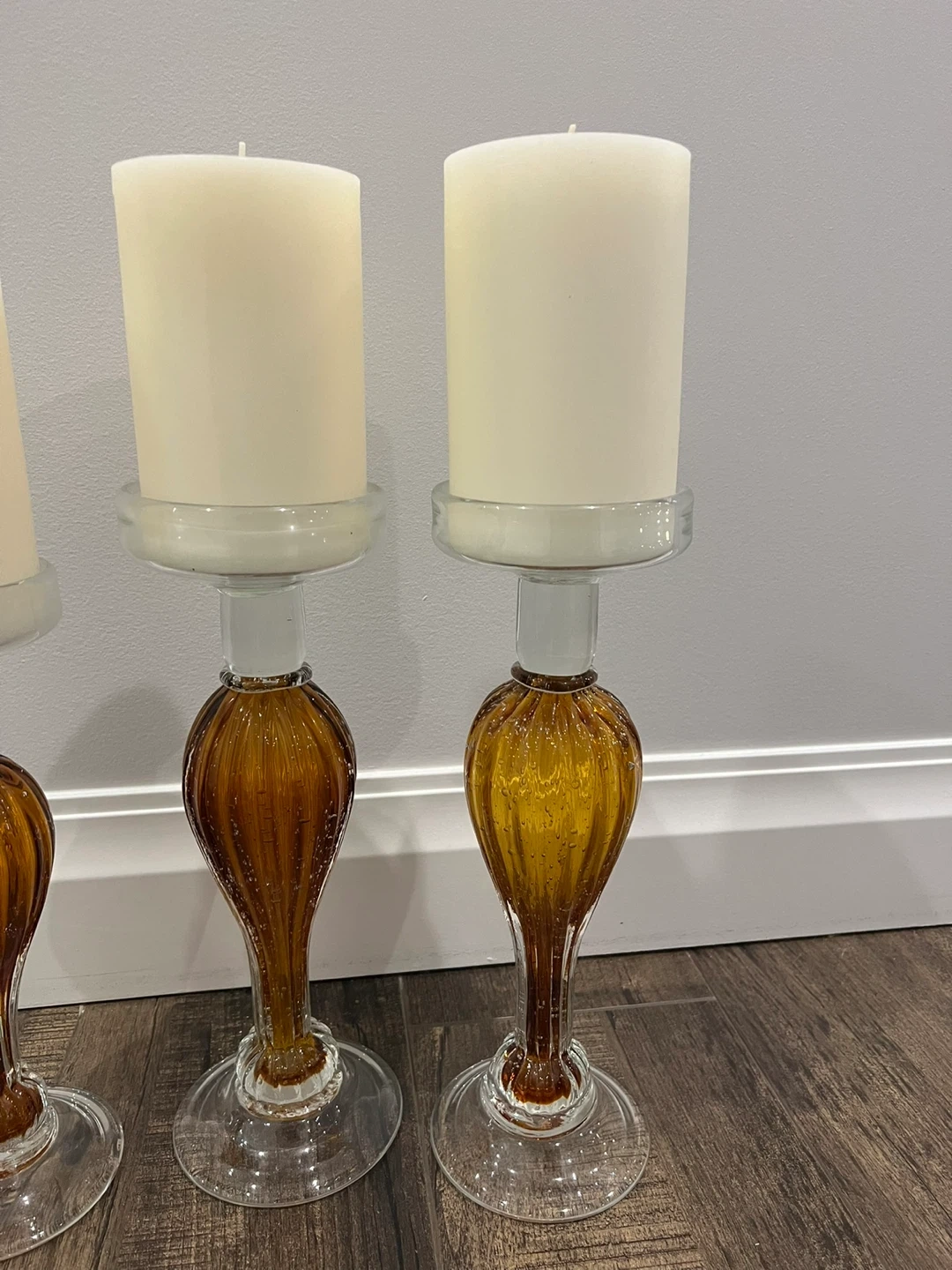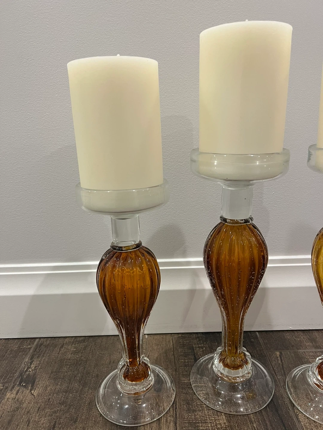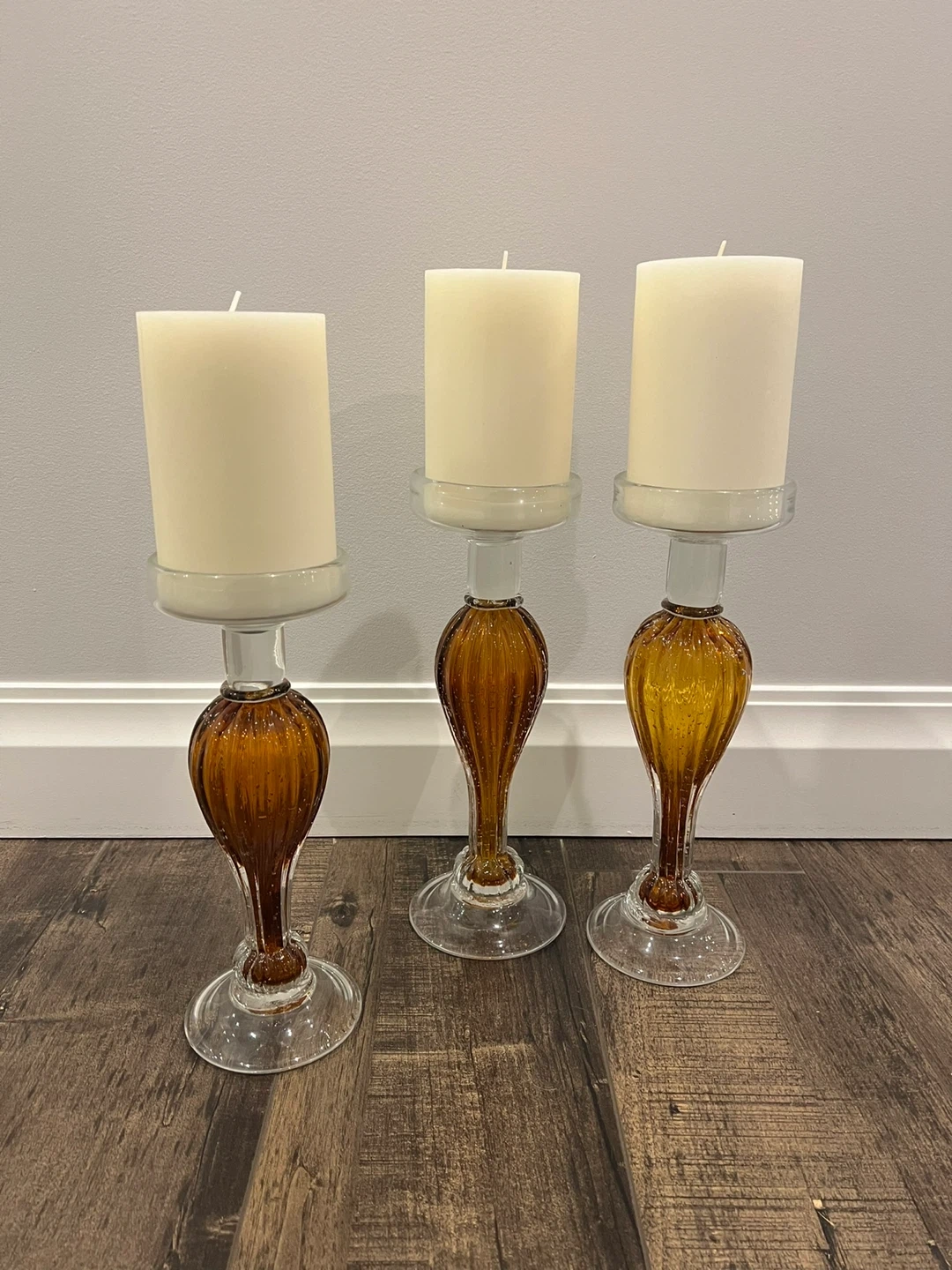 Buy & SellSet of 3 Amber and Clear Glass Candle HoldersSet of 3 Amber and Clear Glass Candle Holders$30Set of three decorative candle holders. Features a clear glass base and stem with an amber glass goblet-shaped accent. Holds pillar candles.ConditionLike newWHERE TO MEETMorgan CrossingView MapSELLERverifiedHaleyN Grandview Heights600 reviews0 chats·2 favorites·23 viewsSEND CHAT TO SELLERHi Haley! I’m interested in your listing.Hi Haley! I’m interested in your listing.Get the Karrot app to chatSign In to chat