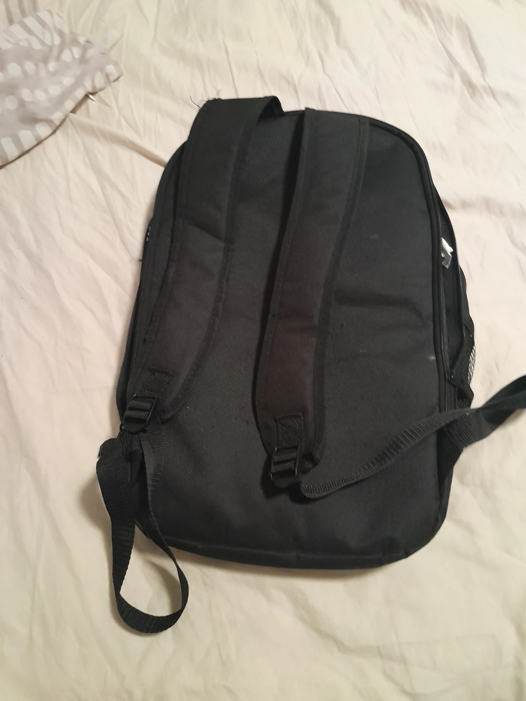 This is a black YOUTHWORK backpack. It's made of nylon material and has multiple compartments, including mesh side pockets. It's suitable for school or everyday use.
