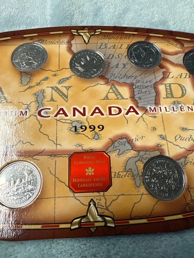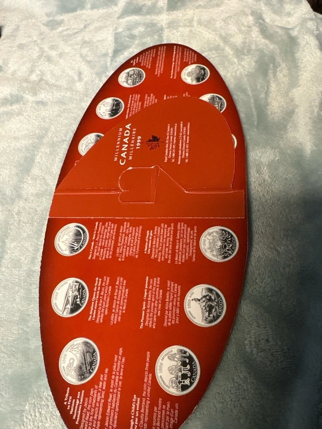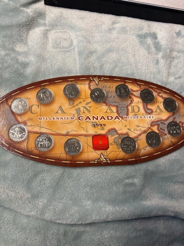 Selling a unique piece of Canadian history—a 1999 Millennium Coin Set, celebrating Canada's journey to the year 2000. This collector's set includes twelve specially designed twenty-five cent coins, each commemorating a different aspect of Canadian life and culture at the turn of the millennium. The coins are displayed in an attractive, themed holder, making it a wonderful addition to any collection or a thoughtful gift for a history enthusiast. This item is used, but in well-maintained condition. These coins aren't just pocket change; they're tiny time capsules! If the ad is still up, then yes, it’s still available! Cash accepted: Yes. Cashless payment: Yes.
