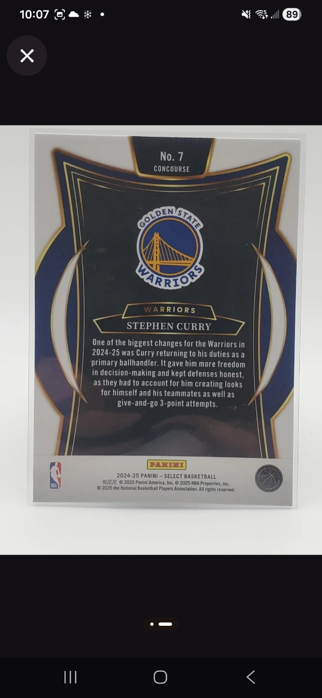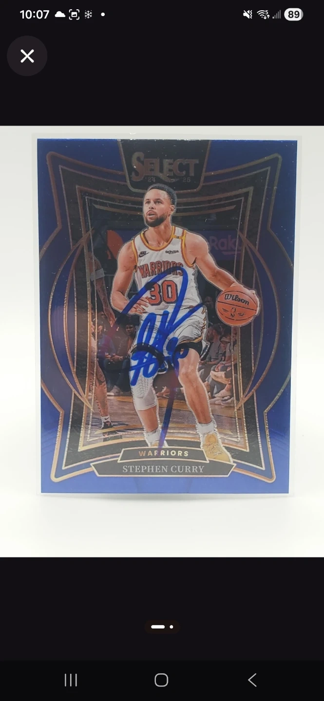 Selling a Stephen Curry autographed basketball card. The card is from the 2024-25 Panini Select Basketball series. It features Stephen Curry in his Warriors jersey. A great collectible for any basketball fan!