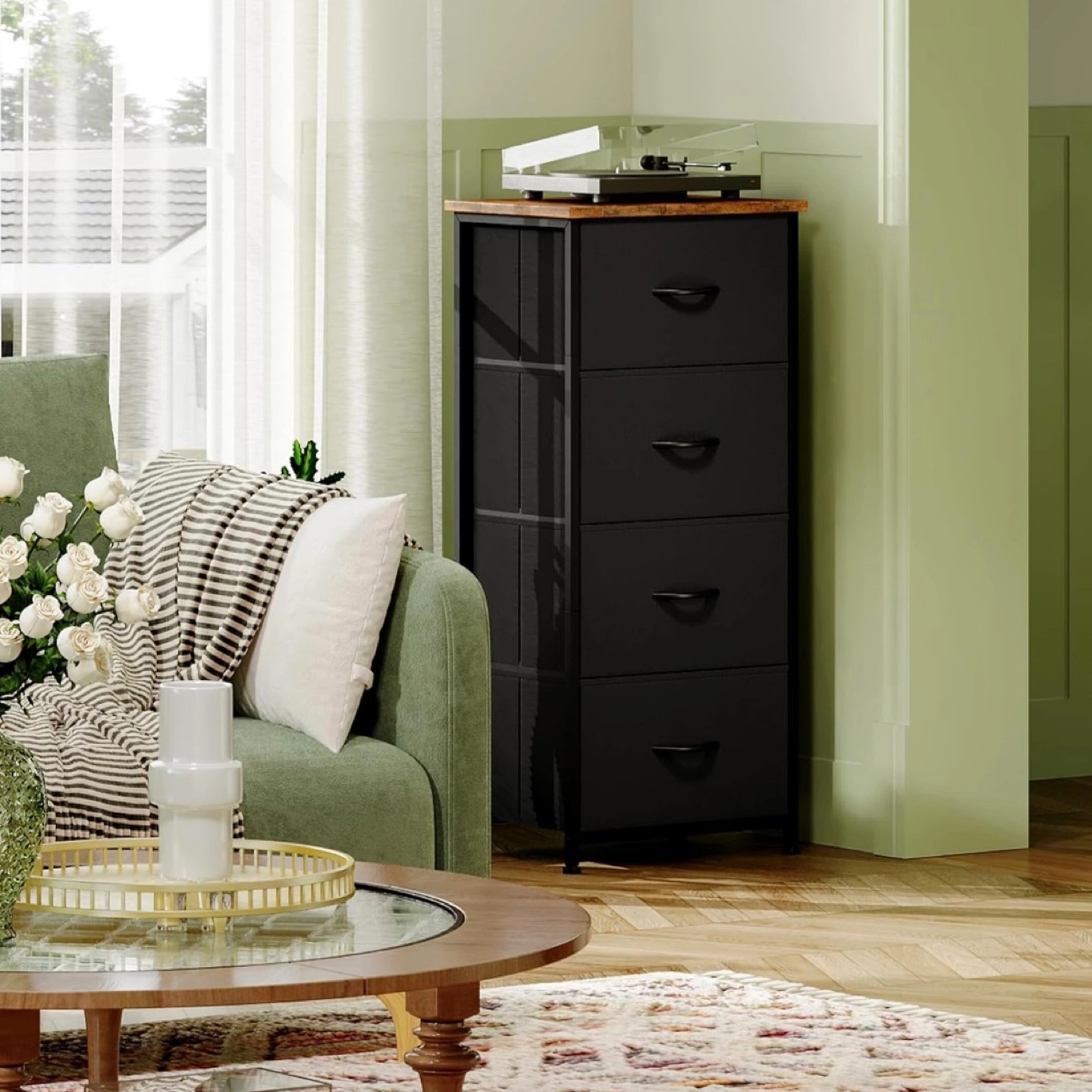 This 4-drawer fabric dresser is perfect for adding storage to any room! It's in great condition and ready for a new home.