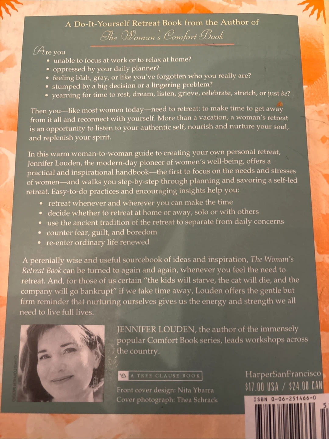 This is a Do-It-Yourself Retreat Book by Jennifer Louden, author of The Woman's Comfort Book. It provides a guide to creating your own personal retreat. It offers practical, step-by-step planning and advice for women. Useful for anyone needing a break from daily stress and routine!