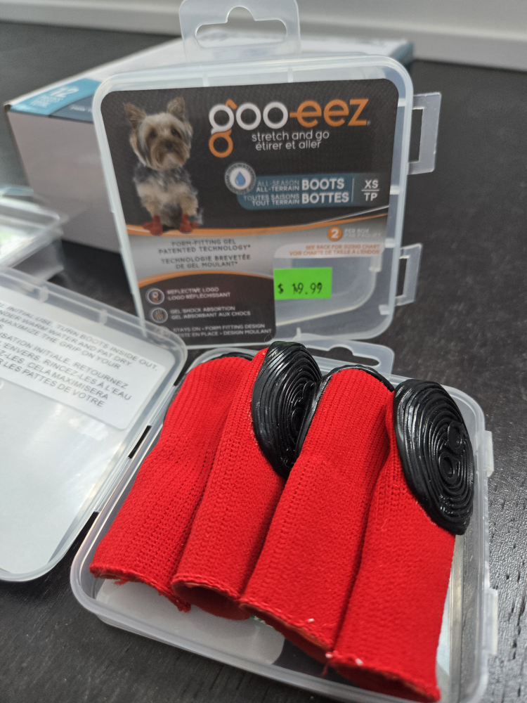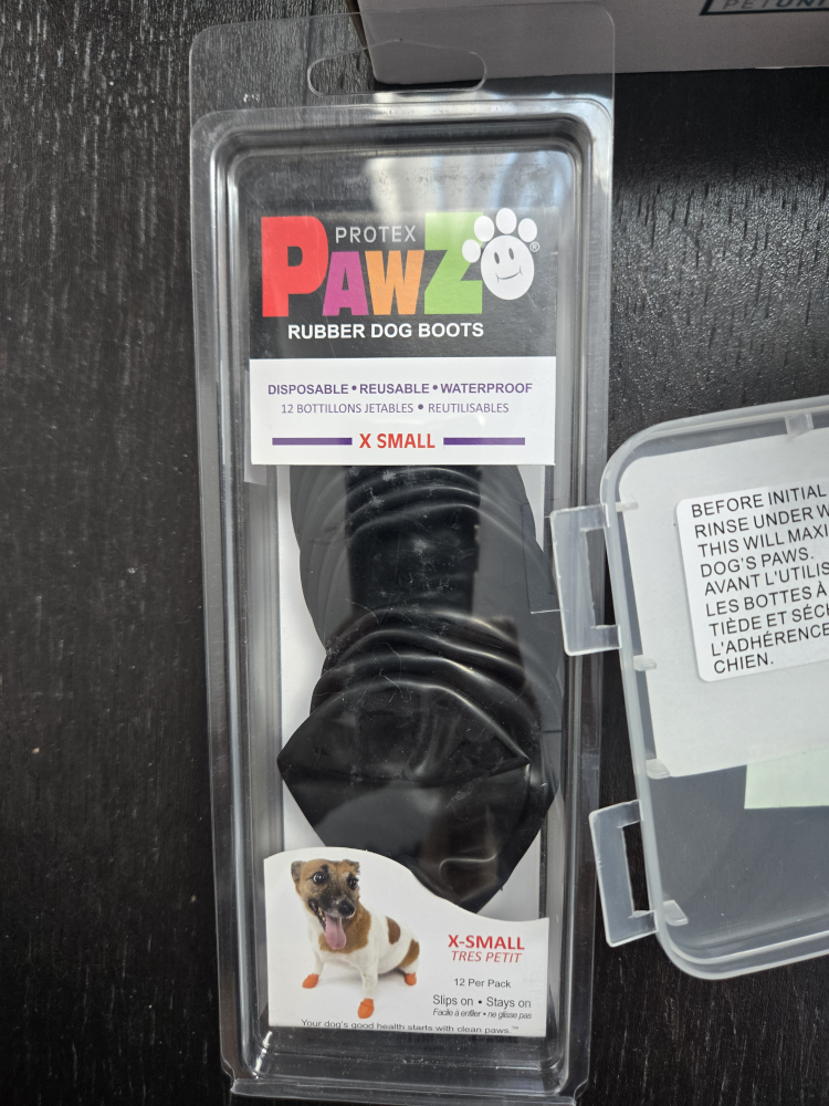 Petunion light duty pet grooming kit. Includes rechargeable hair shaver with 4 guide combs, charging cable, 1 pair of scissors, 1 nail clipper, and file - as shown in picture. Also New 12 Paws booties and 4 Goo-eez booties.