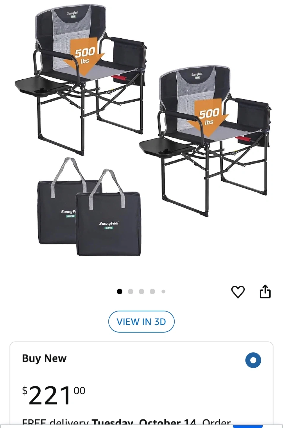 Get ready for your next outdoor adventure with this SunnyFeel camping chair! It's designed for comfort and convenience, featuring a handy side table and a breathable, soft cushion. It can hold up to 500 lbs. The chair is easy to carry in its compact carry bag. It's rust resistant, too!.