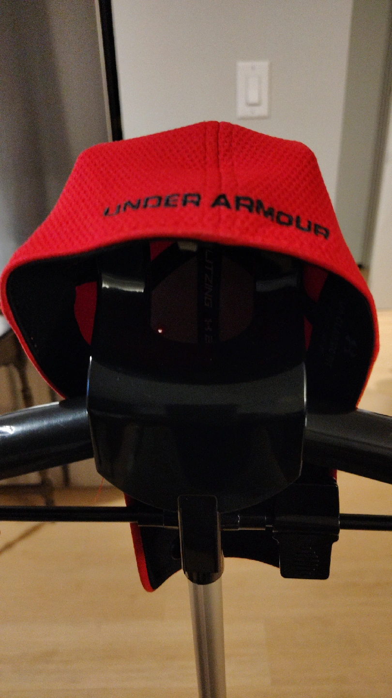Selling a red Under Armour hat. The logo is black. It's in great shape, like new worn once!