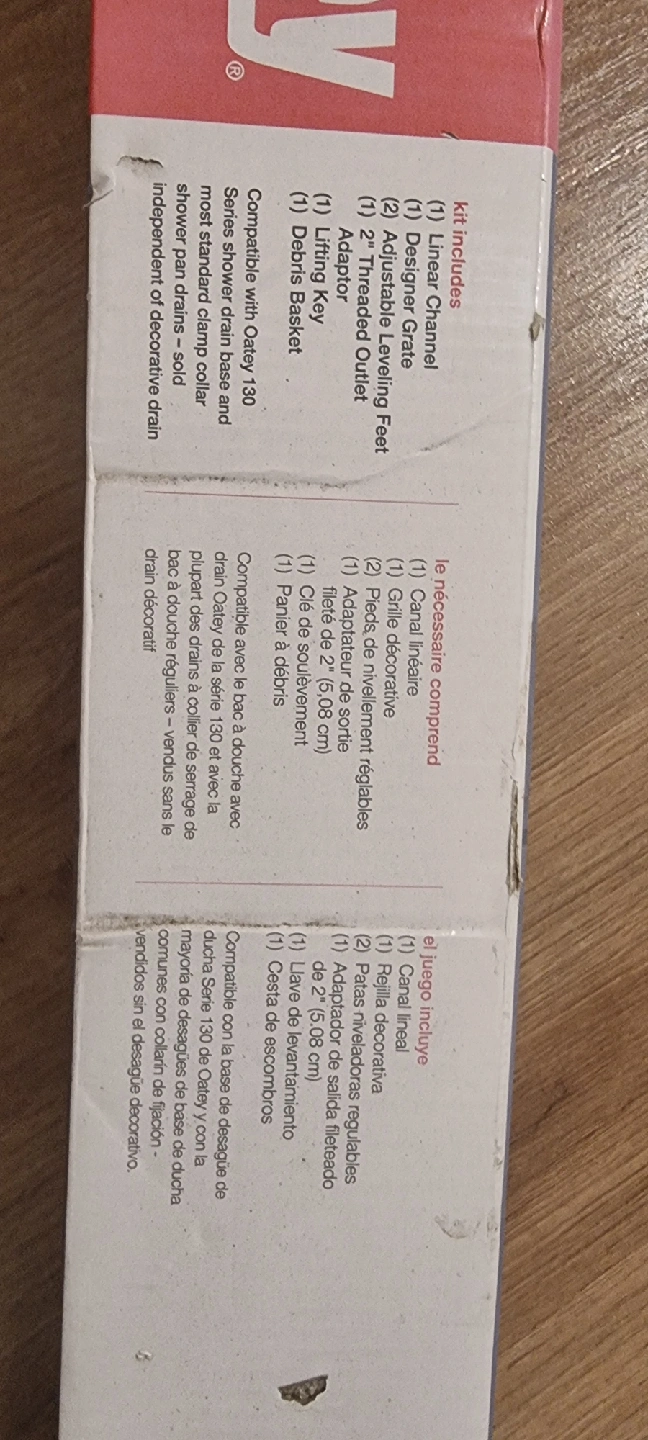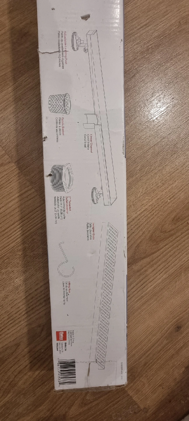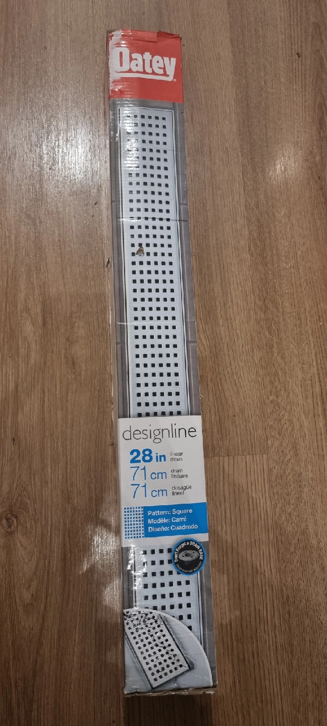 Selling a brand new Oatey Designline linear shower drain! It's 28 inches (71 cm) long. The pattern is square.