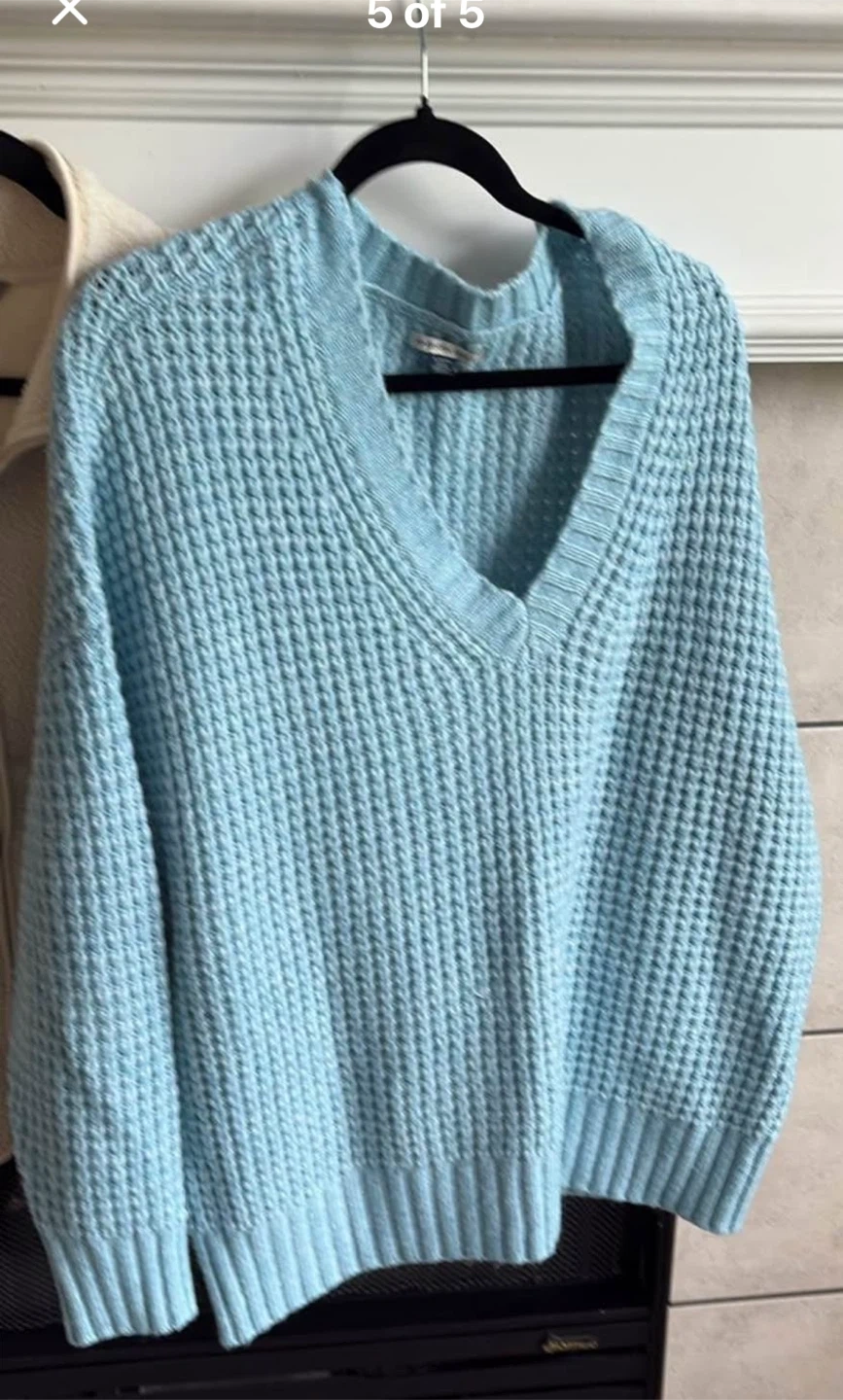 A lovely light blue V-neck sweater! It's in great condition and ready for a new home. Perfect for adding a pop of colour to your wardrobe , and the second beage sweater excellent condition pick up walnut grove Langley $15 each .