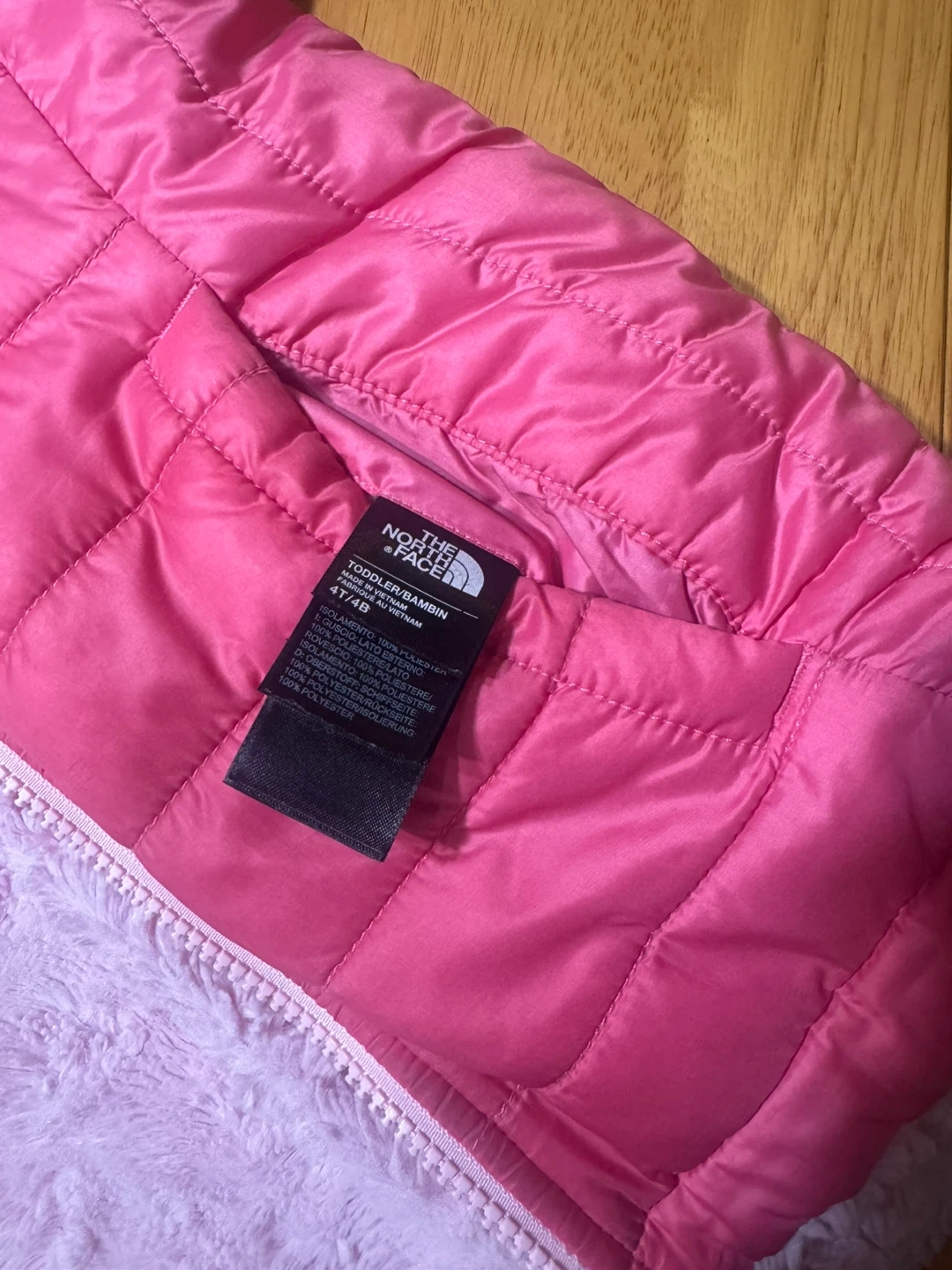 Selling a super cute pink puffer jacket from The North Face! This jacket is a size 4T/4/4X and is perfect for keeping your little one warm and cozy. It's in great condition and ready for a new home!