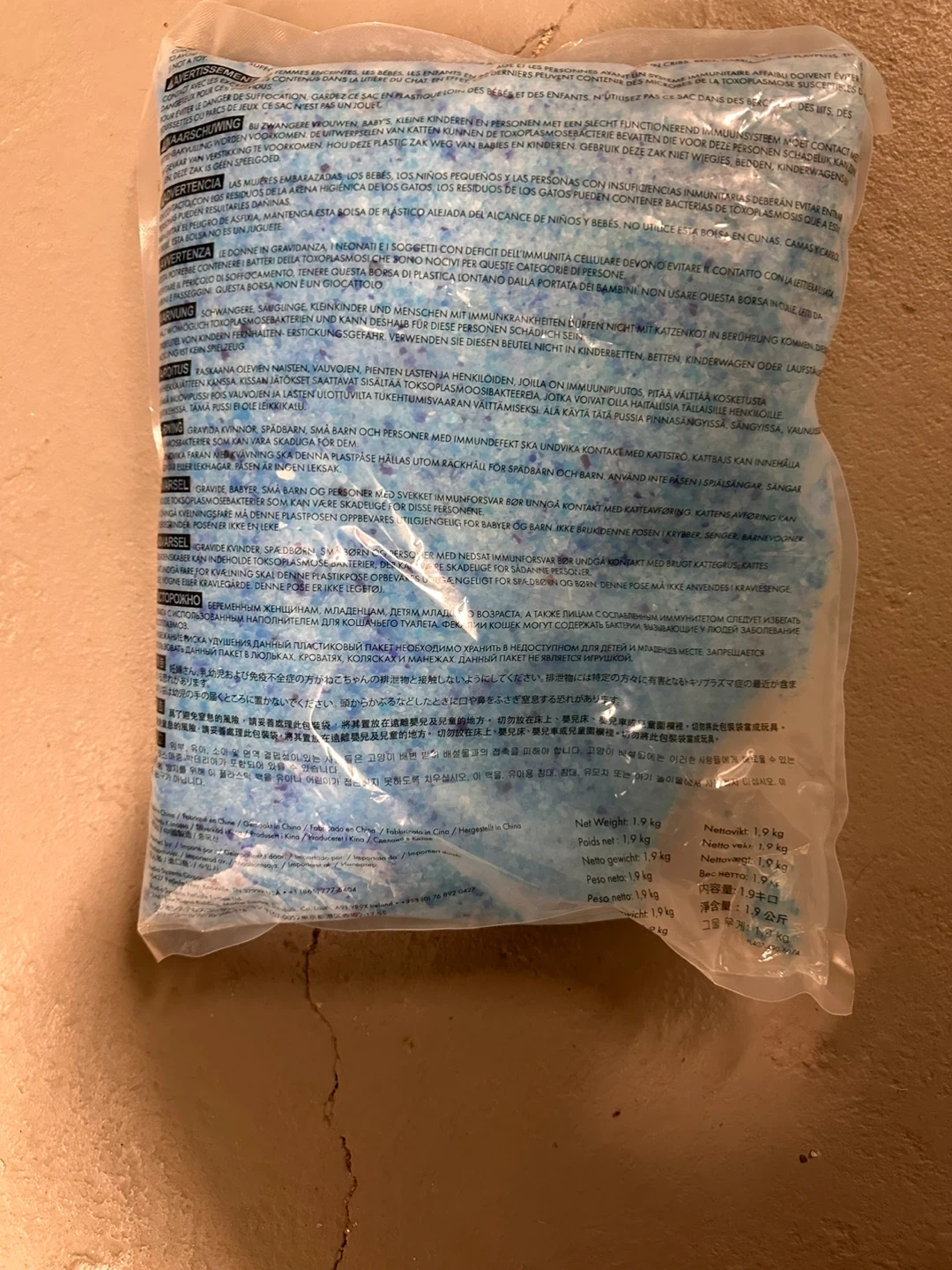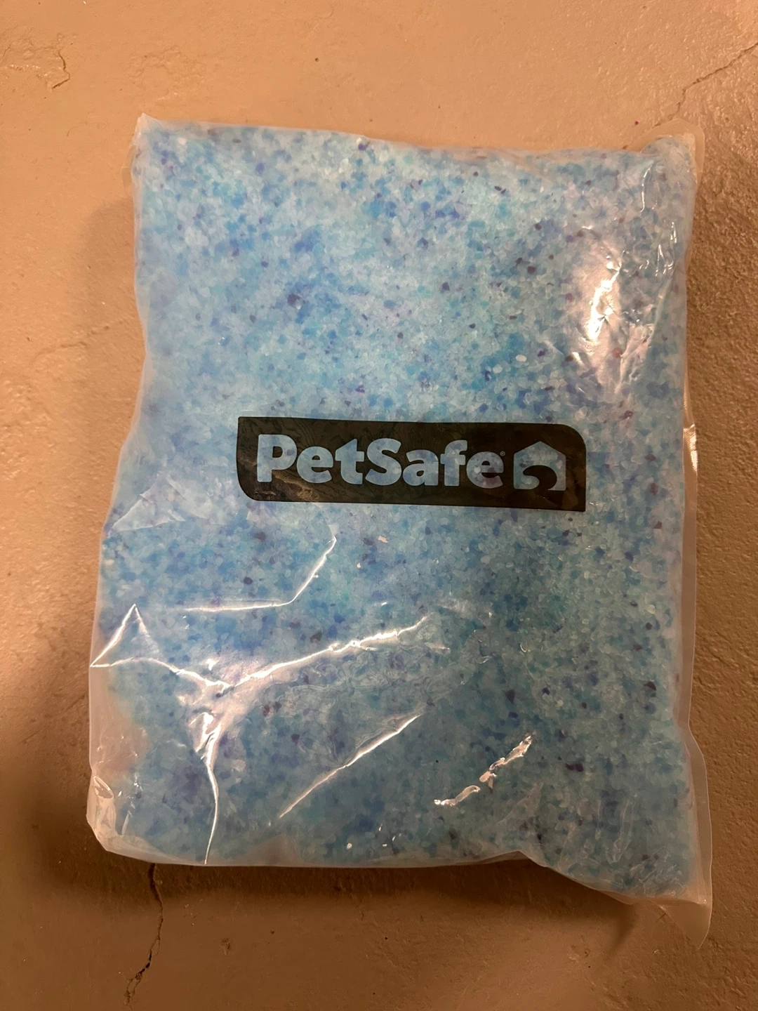 I'm selling a bag of PetSafe Crystal Cat Litter. It's a 1.9kg bag of blue crystals designed to absorb urine and dehydrate solid waste. This helps to control odour and is easy to clean up. Perfect for keeping your cat's litter box fresh!