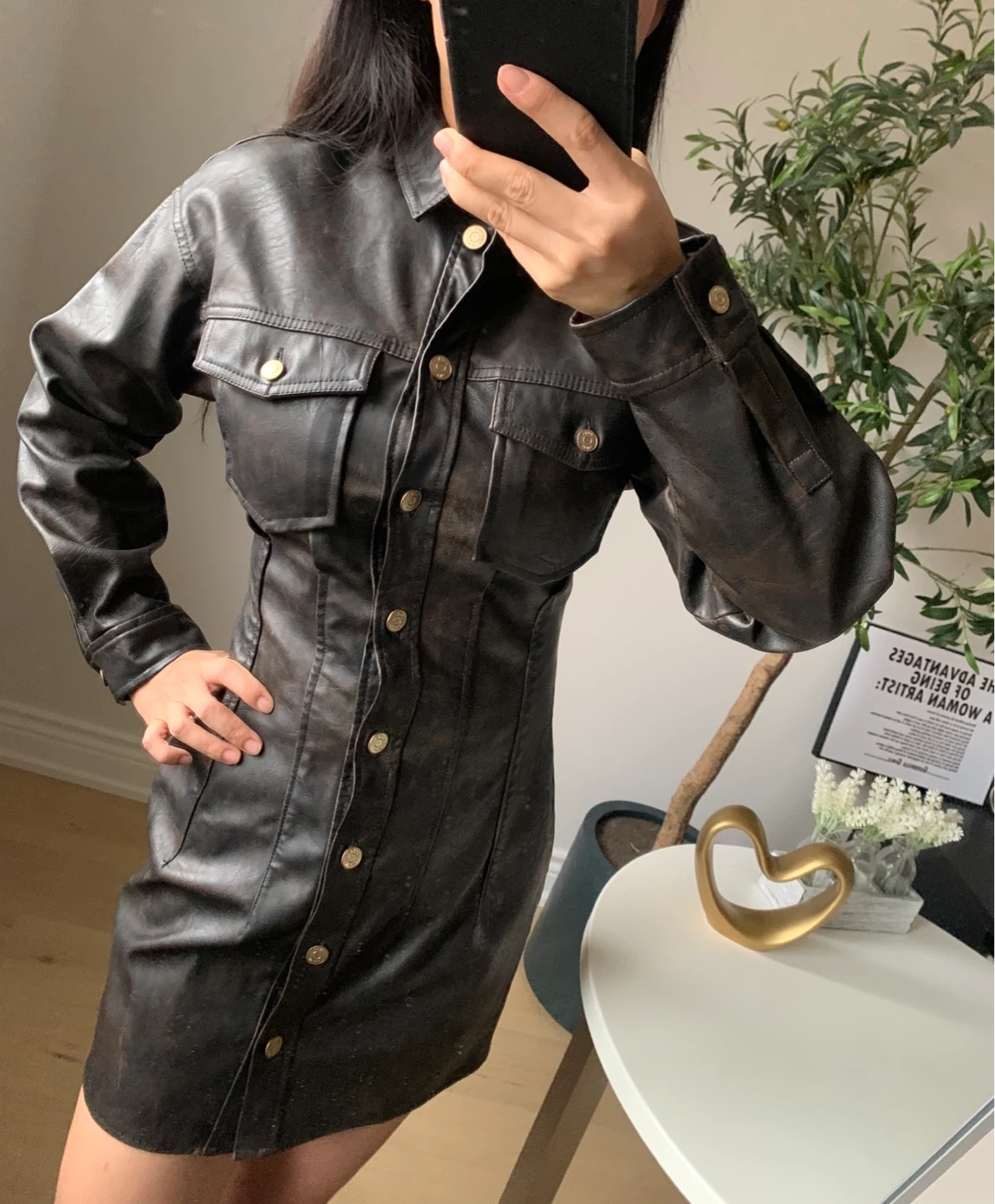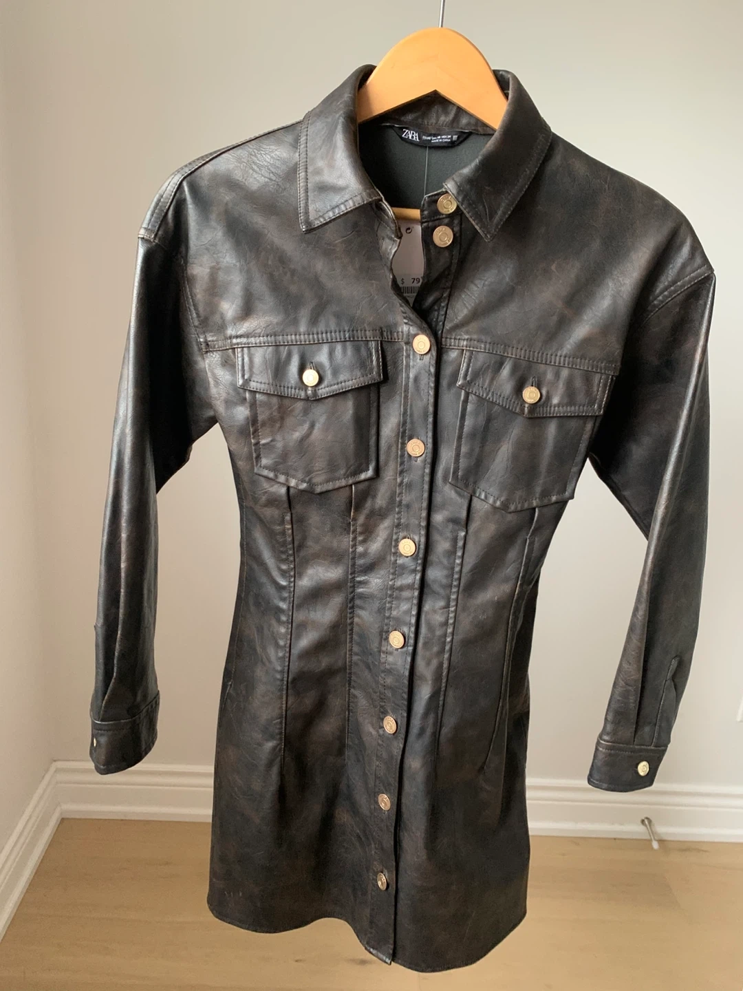 Brand new ZARA faux leather mini dress in a deep brown tone with subtle textured finish.