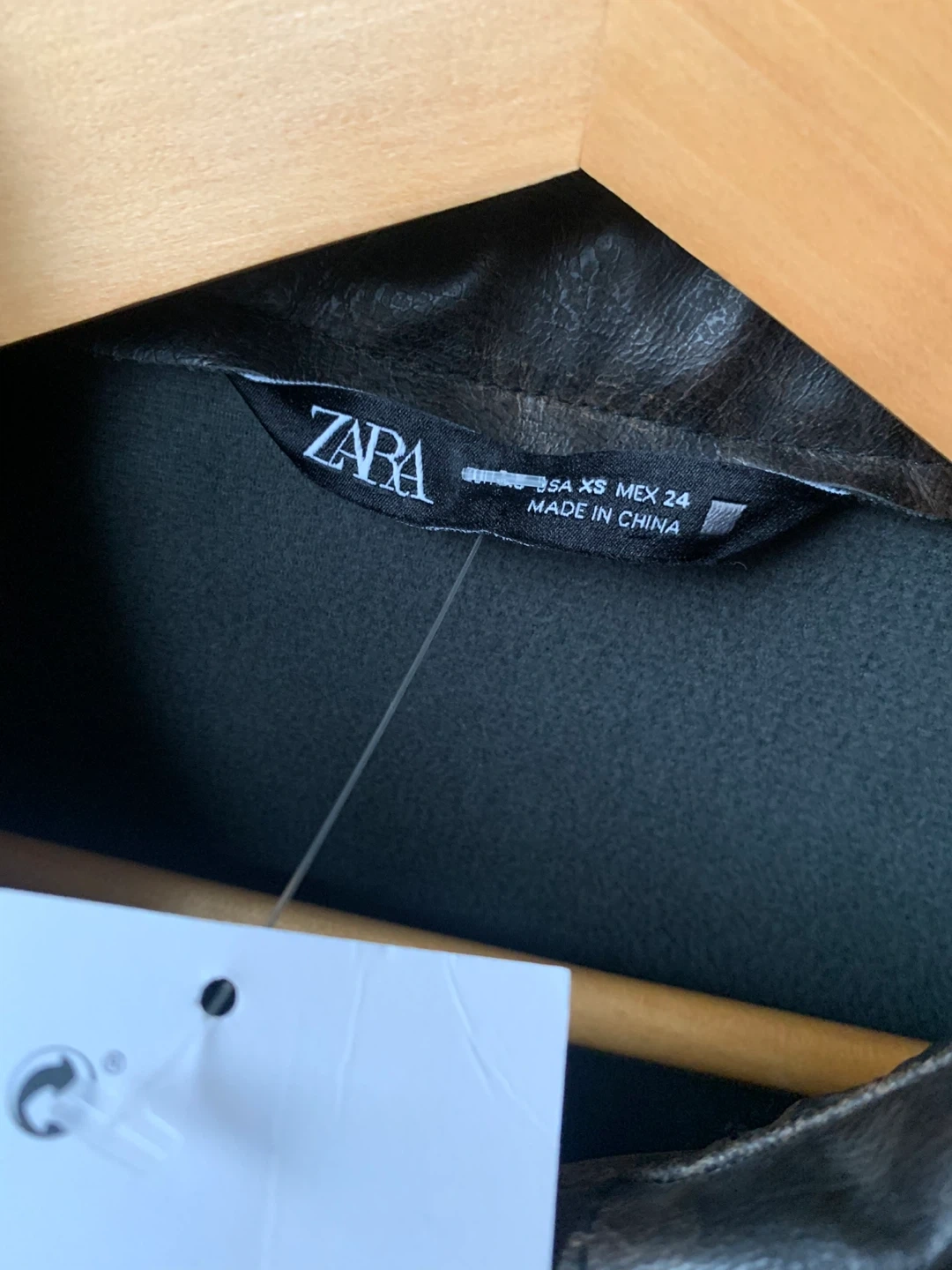 Brand new ZARA faux leather mini dress in a deep brown tone with subtle textured finish.