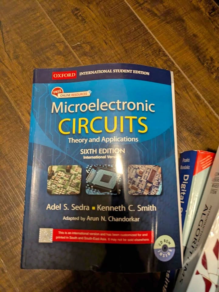 1. Microelectronic Circuits Theory and Applications 6th edition international version (Authors-Adel S. sedra & Kenneth C. Smith) (Oxford publication).