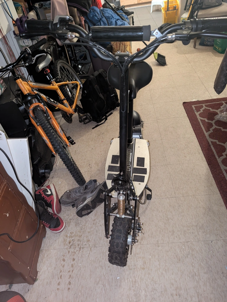 Selling a Moonbike 3000w electric scooter. It has a black frame and silver deck. It's in good condition and ready for a new owner! Used only a few times. Comes with the charger. And I'll give the key.