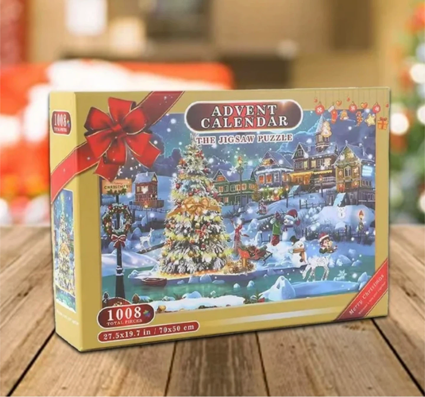 Get into the holiday spirit with this Advent Calendar jigsaw puzzle! It features a festive winter scene and contains 1008 pieces for hours of fun. The assembled puzzle measures approximately 27.5 x 19.7 inches (70 x 50 cm). Perfect for Christmas!