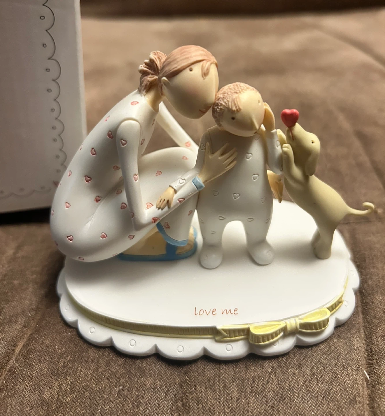 88This is a sweet DEMDACO 'Love Me' figurine from the 'From Above' collection. The figurine depicts a heartwarming scene of a woman, child, and dog. It comes with its original box and styrofoam packaging. Perfect for adding a touch of warmth to any room!