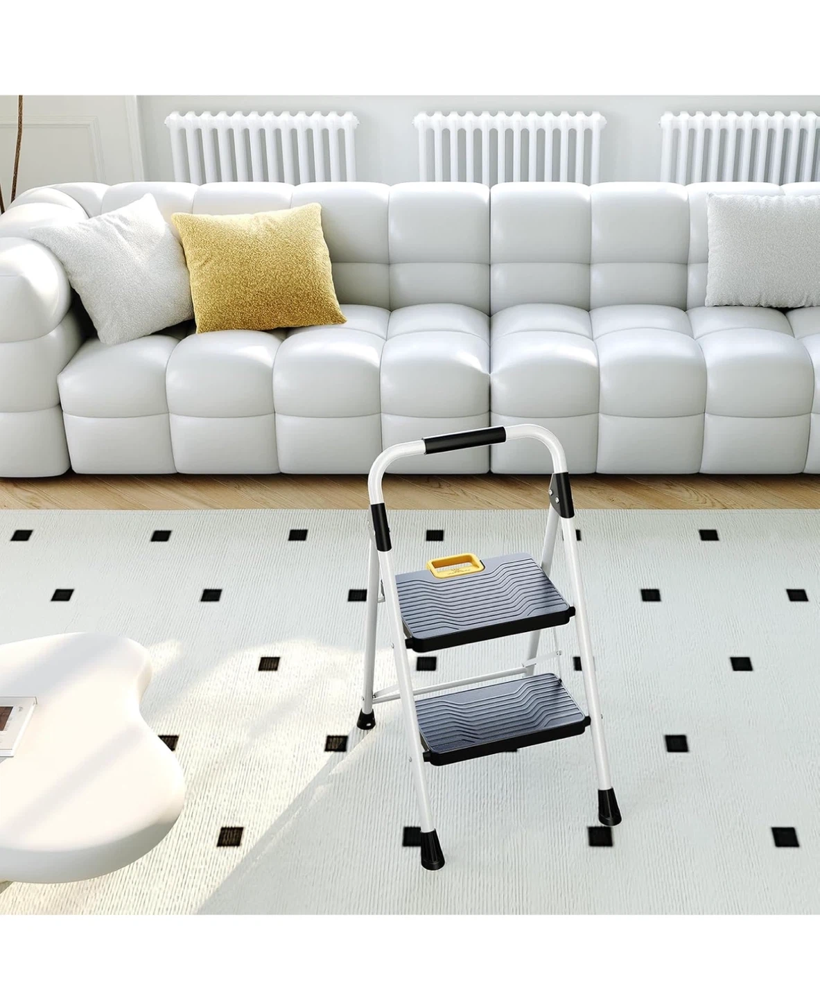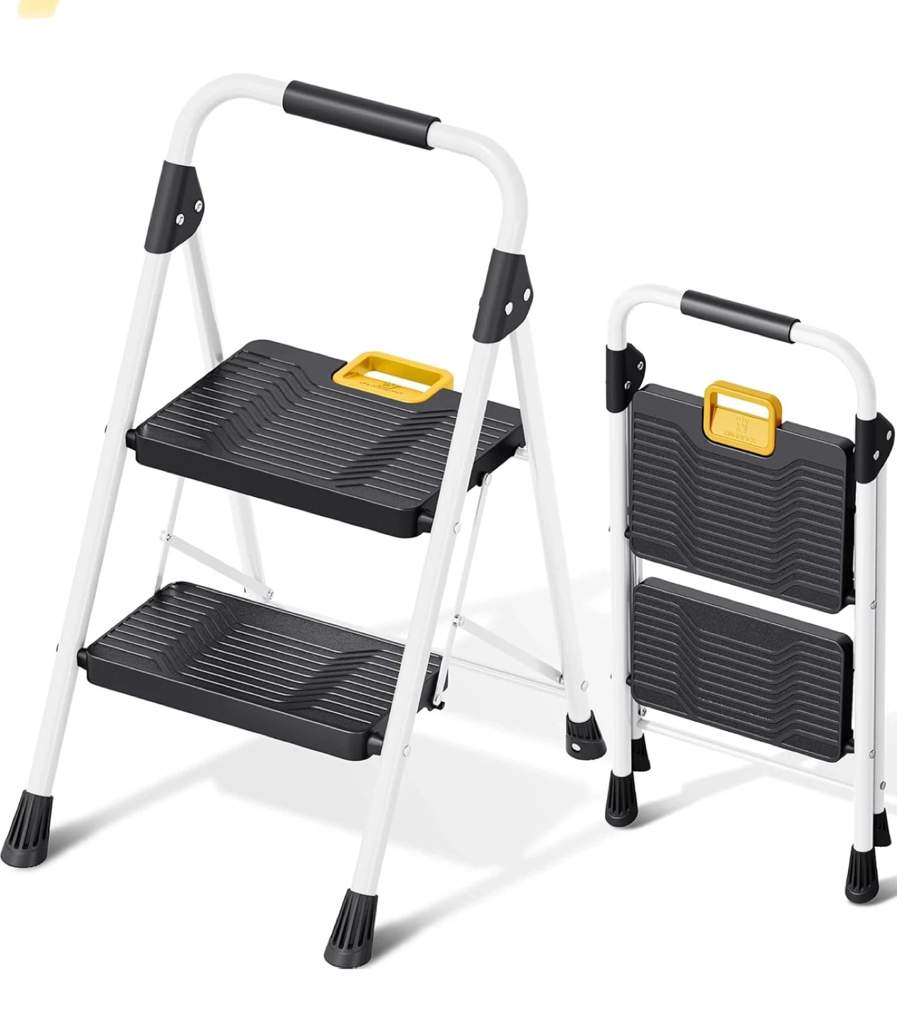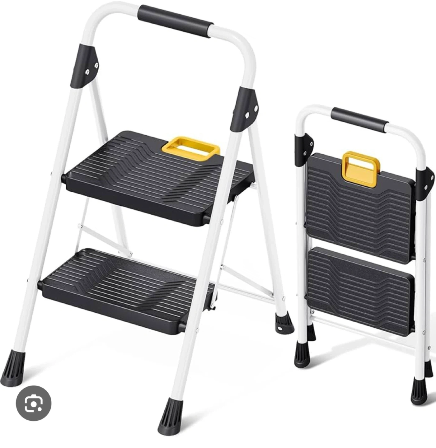 62This folding 2-step ladder is perfect for small tasks around the house! It's designed for easy folding and storage, making it super convenient. The dimensions are: - Folded: 3" x 35.43" - Open: 18.11" x 22.05" x 32.05" It features a safety lock for secure use and is lightweight and portable