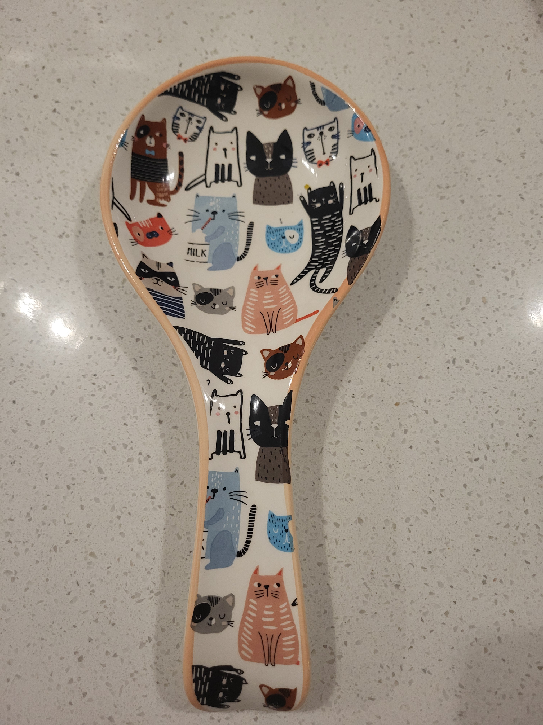 Cute ceramic spoon rest featuring a variety of cat illustrations! Perfect for keeping your counters clean while cooking. In great condition and ready for a new home