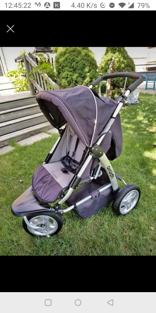 Selling a used Avalon jogging stroller as kid has outgrown. Good condition, smooth ride and easy maneuverability.