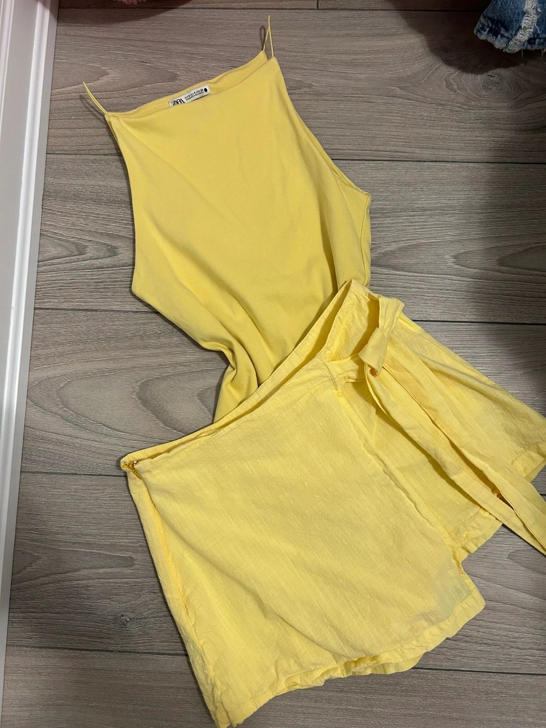 Selling a cute Zara two-piece set in a sunny yellow colour! It's a size small and in great condition. Perfect for summer days or a vacation outfit. The set includes a cami top and matching shorts with a tie waist. The material is lightweight and breezy, perfect for staying cool in the heat