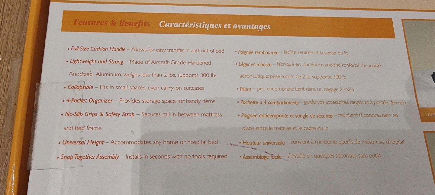 - No-slip grips and safety strap to secure the rail between the mattress and bed frame