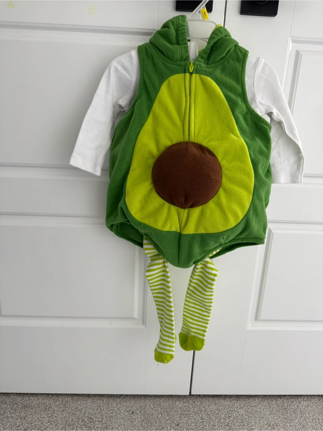How cute is this little avocado costume. It's sized for 6-9 months. Perfect for Halloween or just some fun dress-up time.