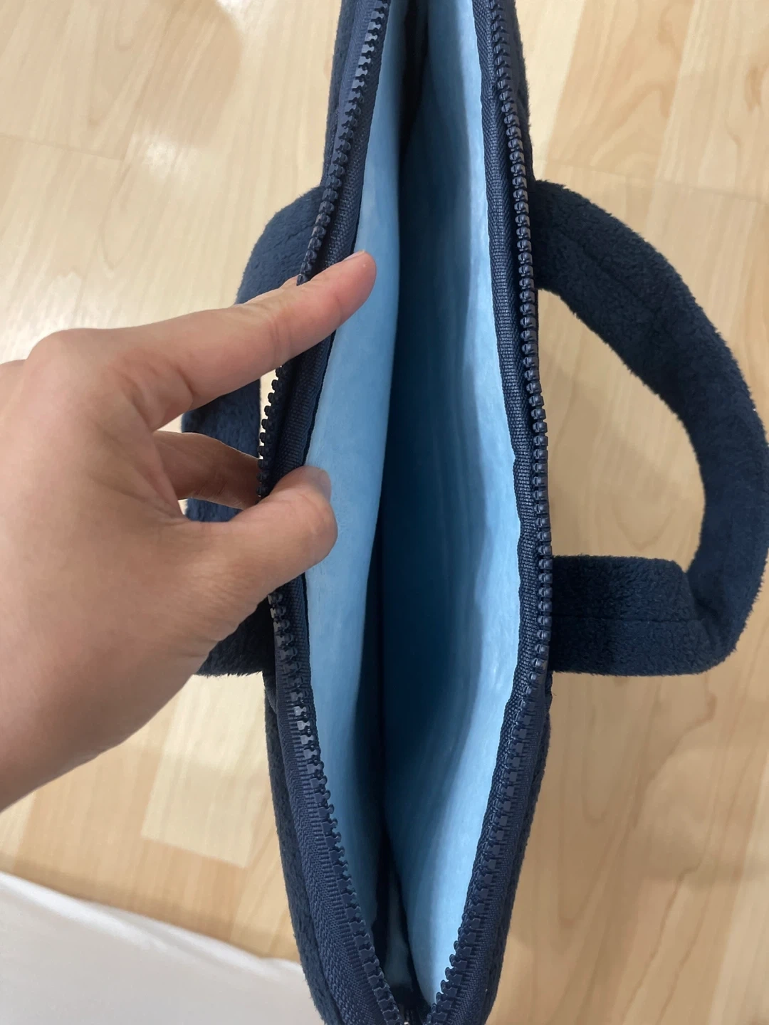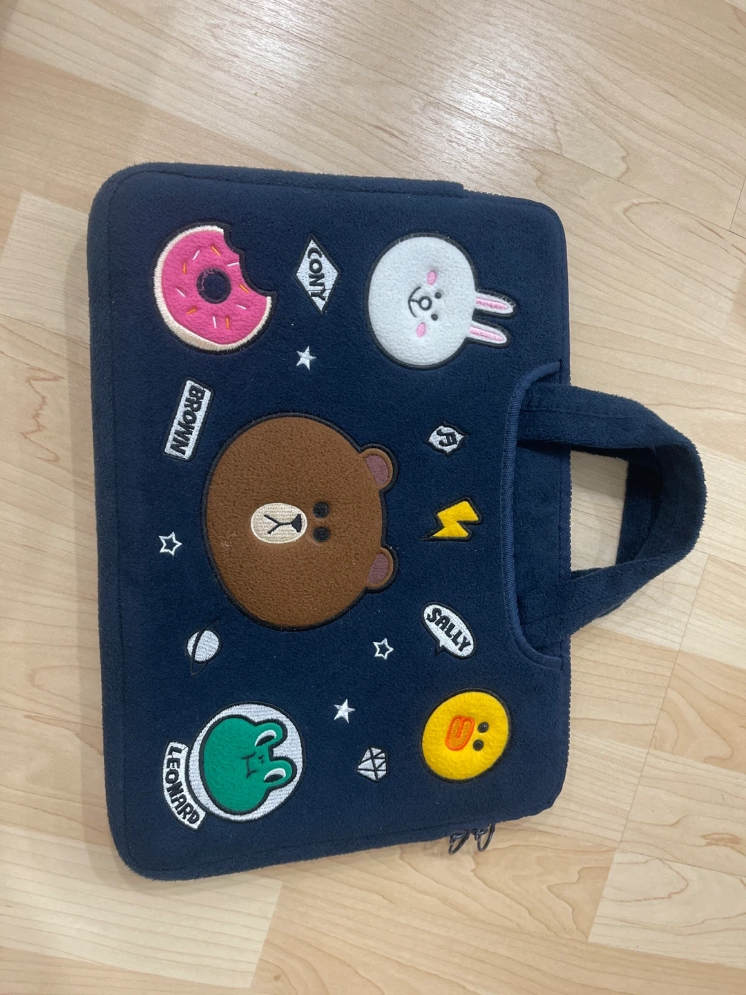 Super cute Line Friends laptop sleeve! It's a soft, navy blue, and fits a 13-inch laptop perfectly. Features Brown, Cony, Sally, and Leonard characters. Great for protecting your laptop in style