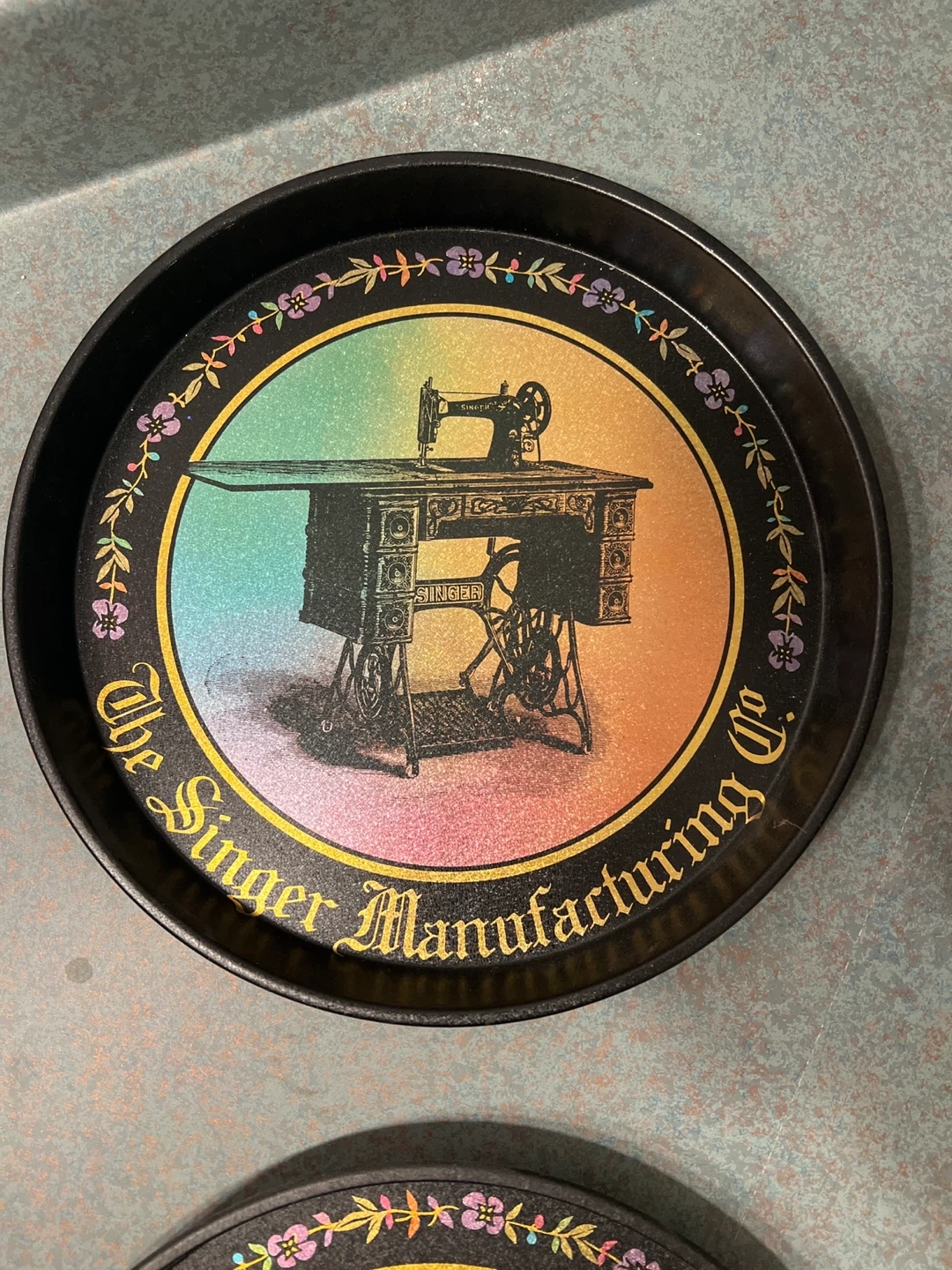 Selling a decorative tray featuring The Singer Manufacturing Co. design. It's in great shape and perfect for adding a vintage touch to your home decor!